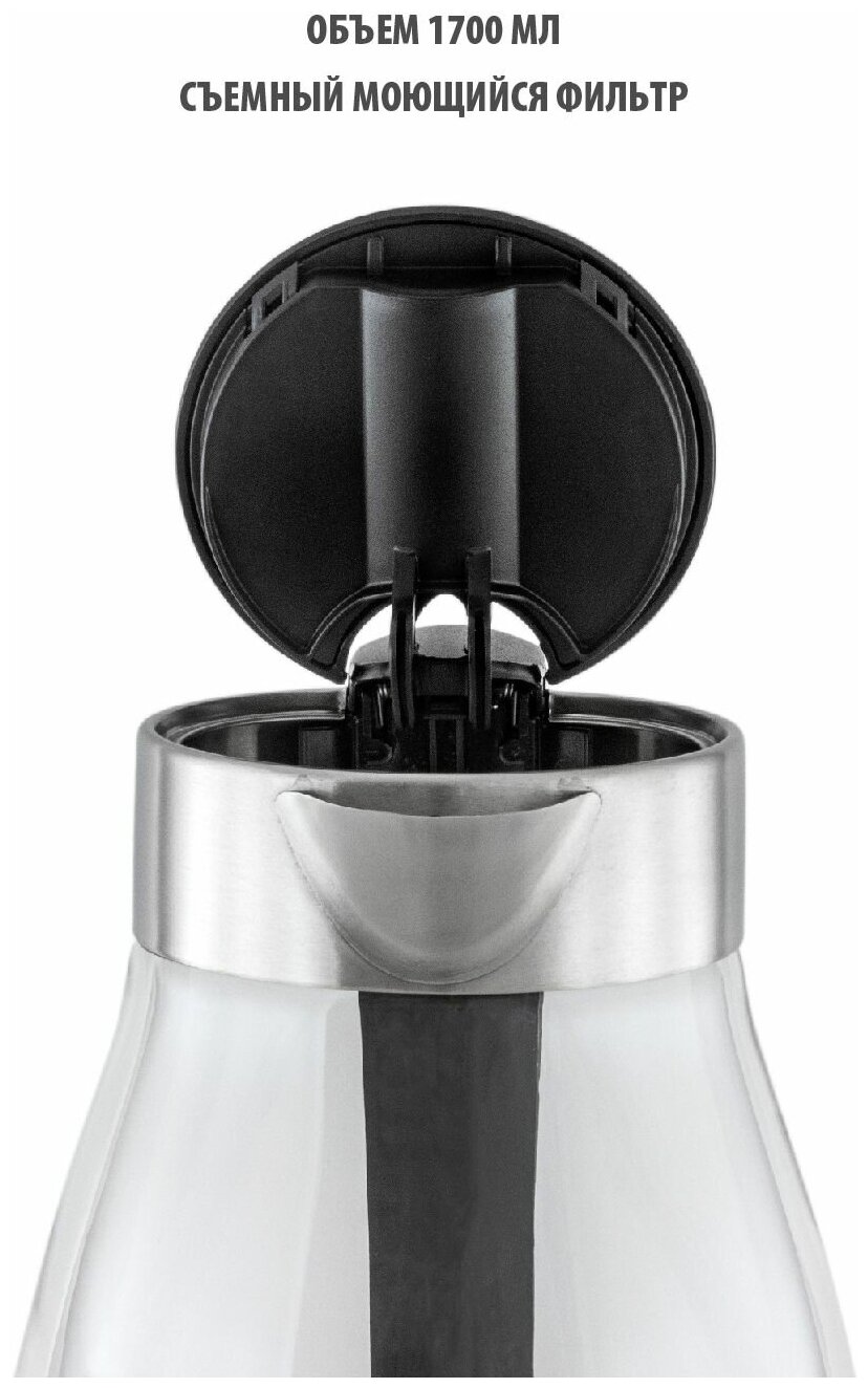 Электрический чайник Pioneer KE809G из термостойкого стекла с LED подсветкой, 1,7 л, автоотключение при закипании и снятии с базы, 2200 Вт