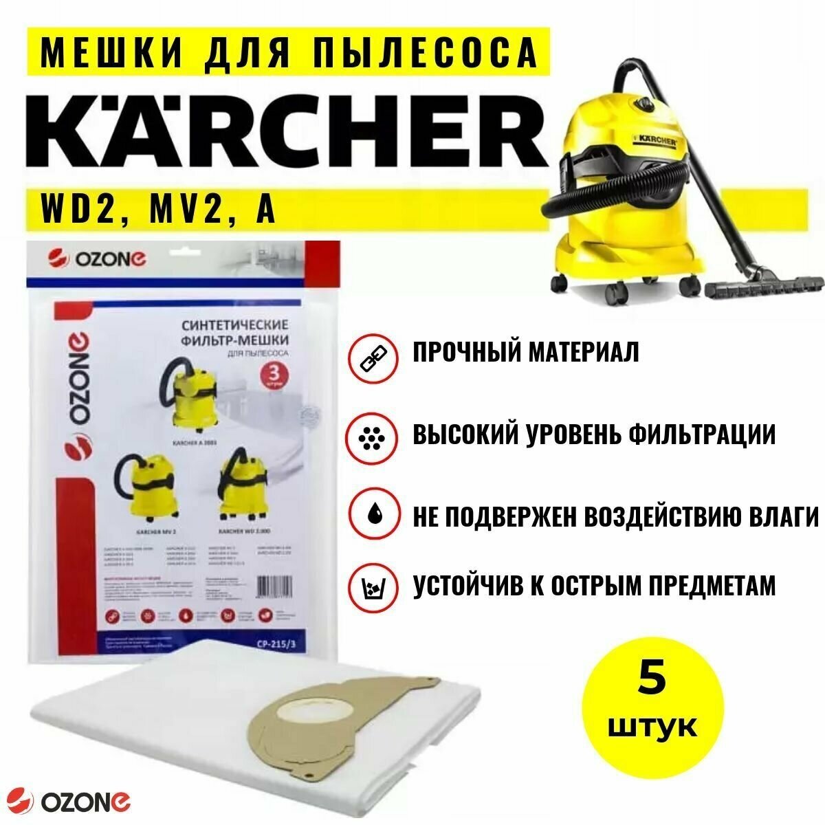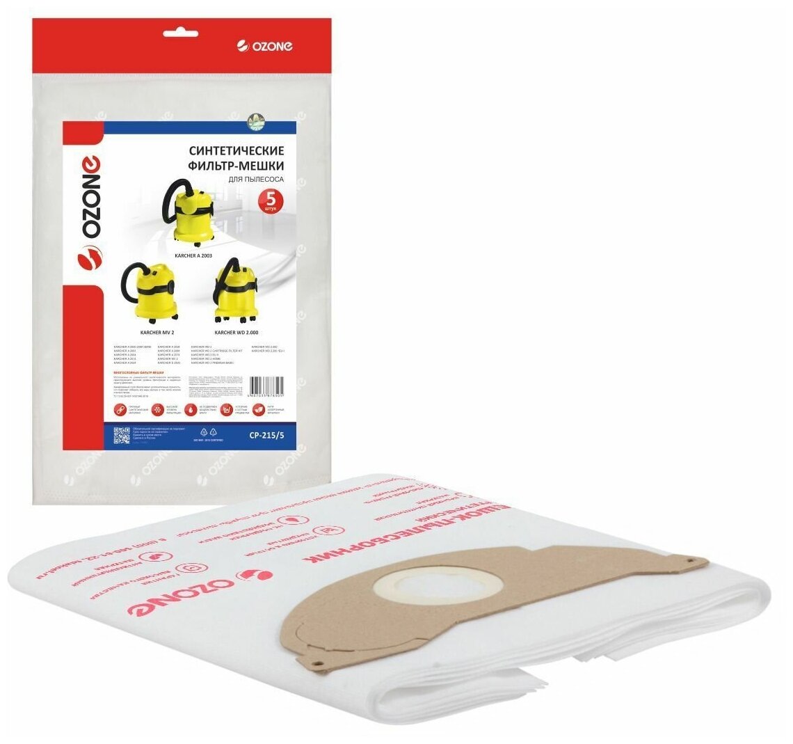 10 цен на Ozone CP-215/5 Фильтр-мешки для пылесоса KARCHER MV 2, WD 2 5 шт. синтетические многослойные / фильтр мешки karcher/ пылесборник