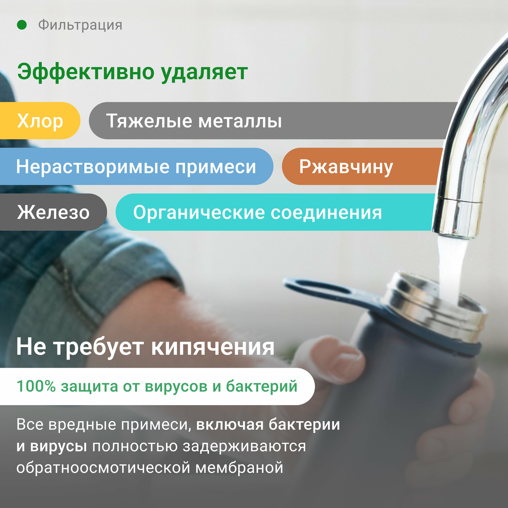 10 цен на Система обратного осмоса Гейзер Аллегро, глубокая очистка воды от различных примесей, включая бактерии и вирусы, 20036
