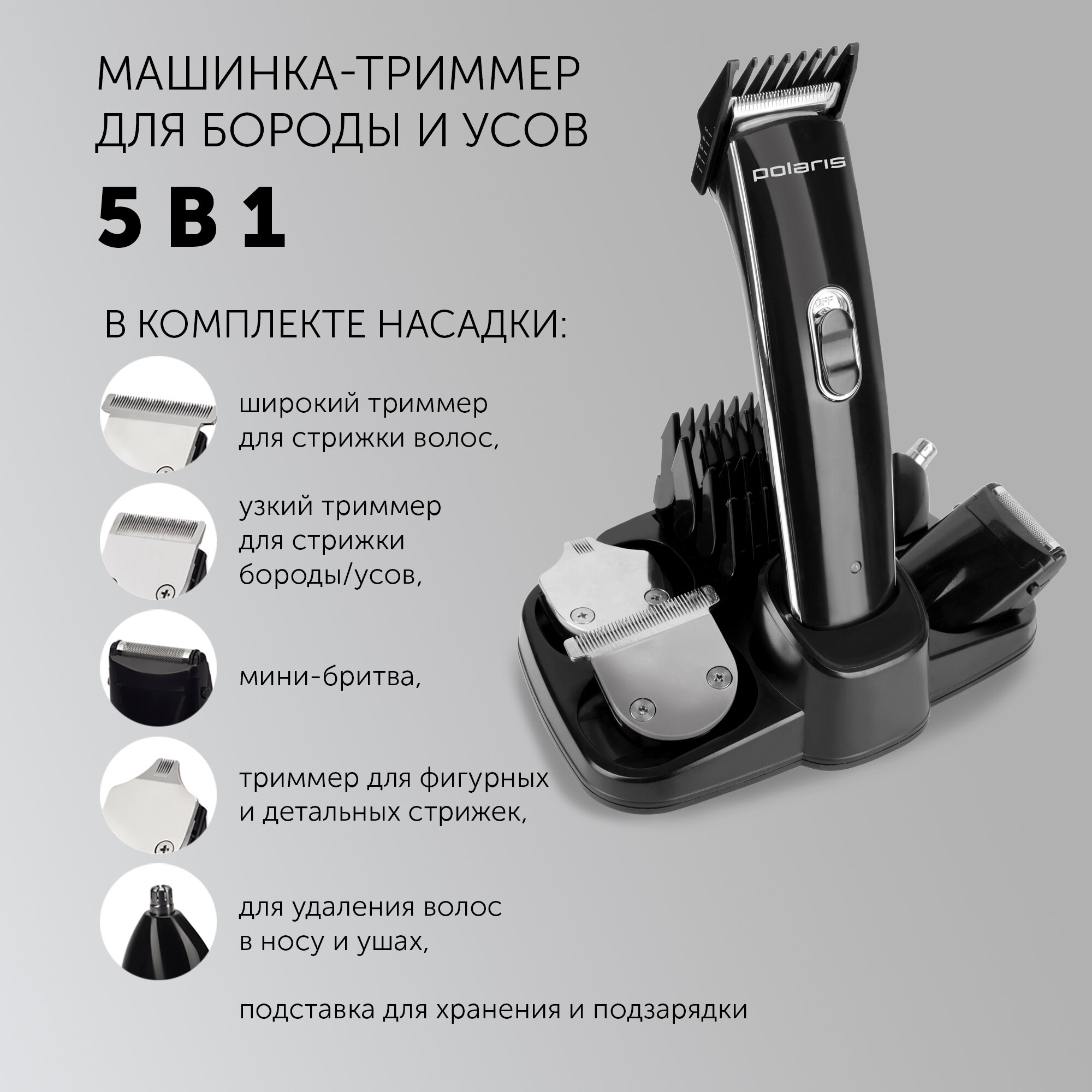 Машинка для стрижки волос 5 в 1 Polaris PHC 3015RC (работает от аккумулятора/сети)