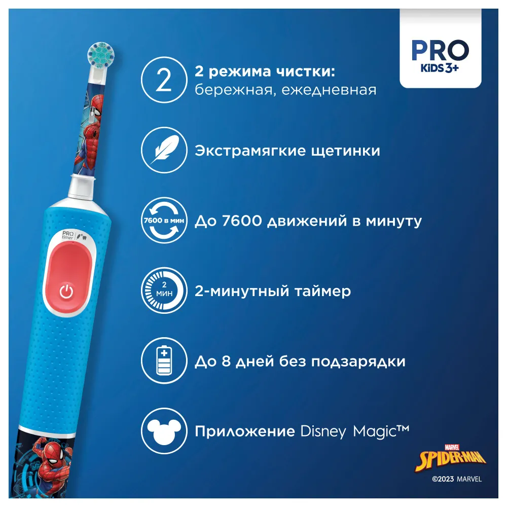 Электрическая зубная щетка Braun Oral-B Vitality Pro D103 Kids Spiderman голубой 5 207 ₽