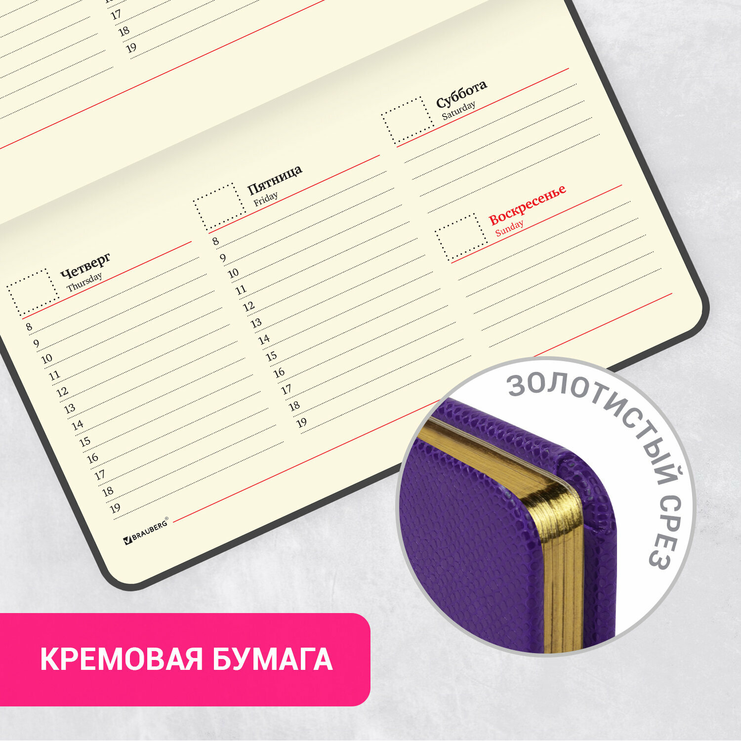 Еженедельник-планер (планинг) / записная книжка / блокнот недатированный Малый Формат 95х155мм А6 Brauberg Iguana под кожу, 64 л., сиреневый, 114482 информация: