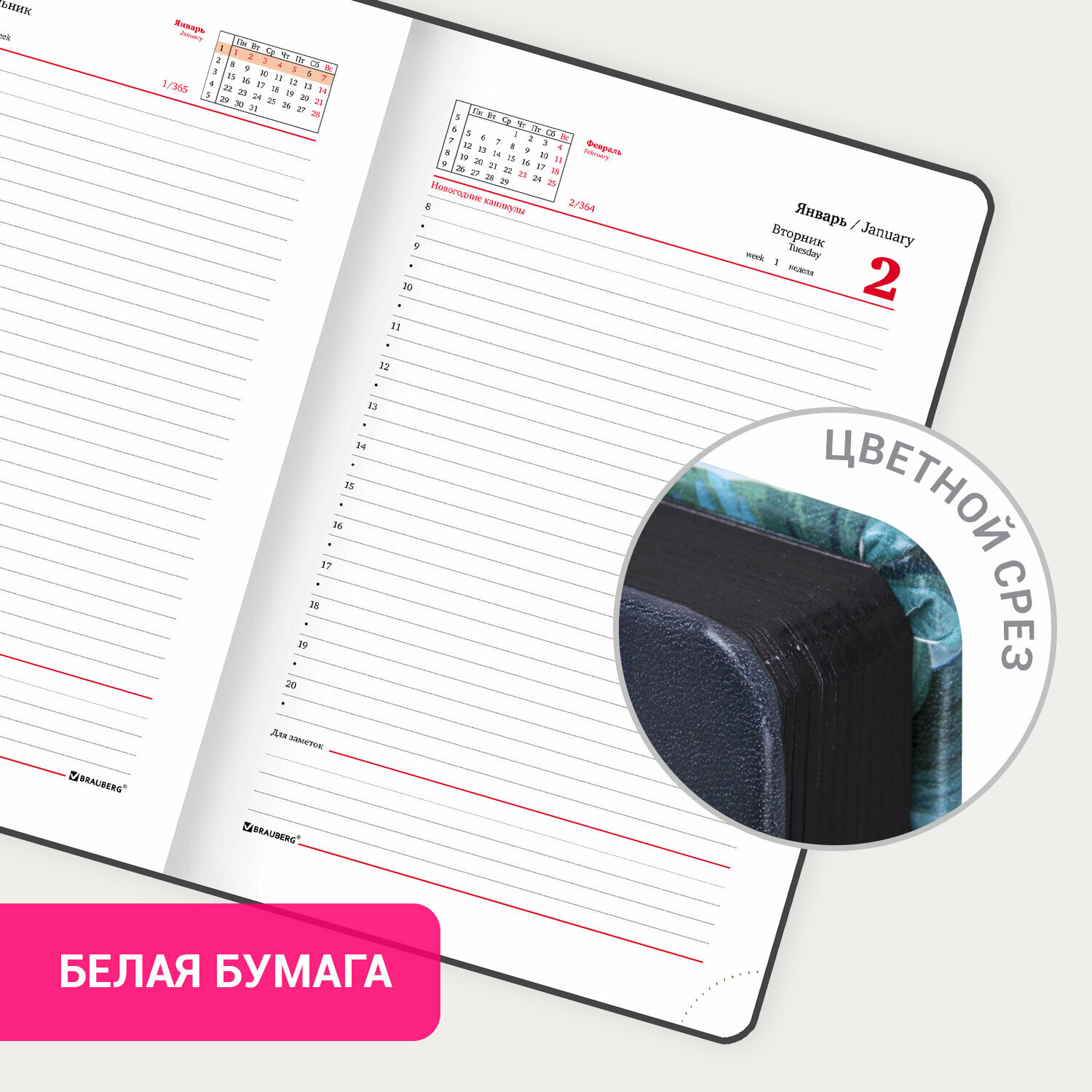 | Особенности | перфорация уголков / справочная информация / поля / ляссе / держатель для ручки |