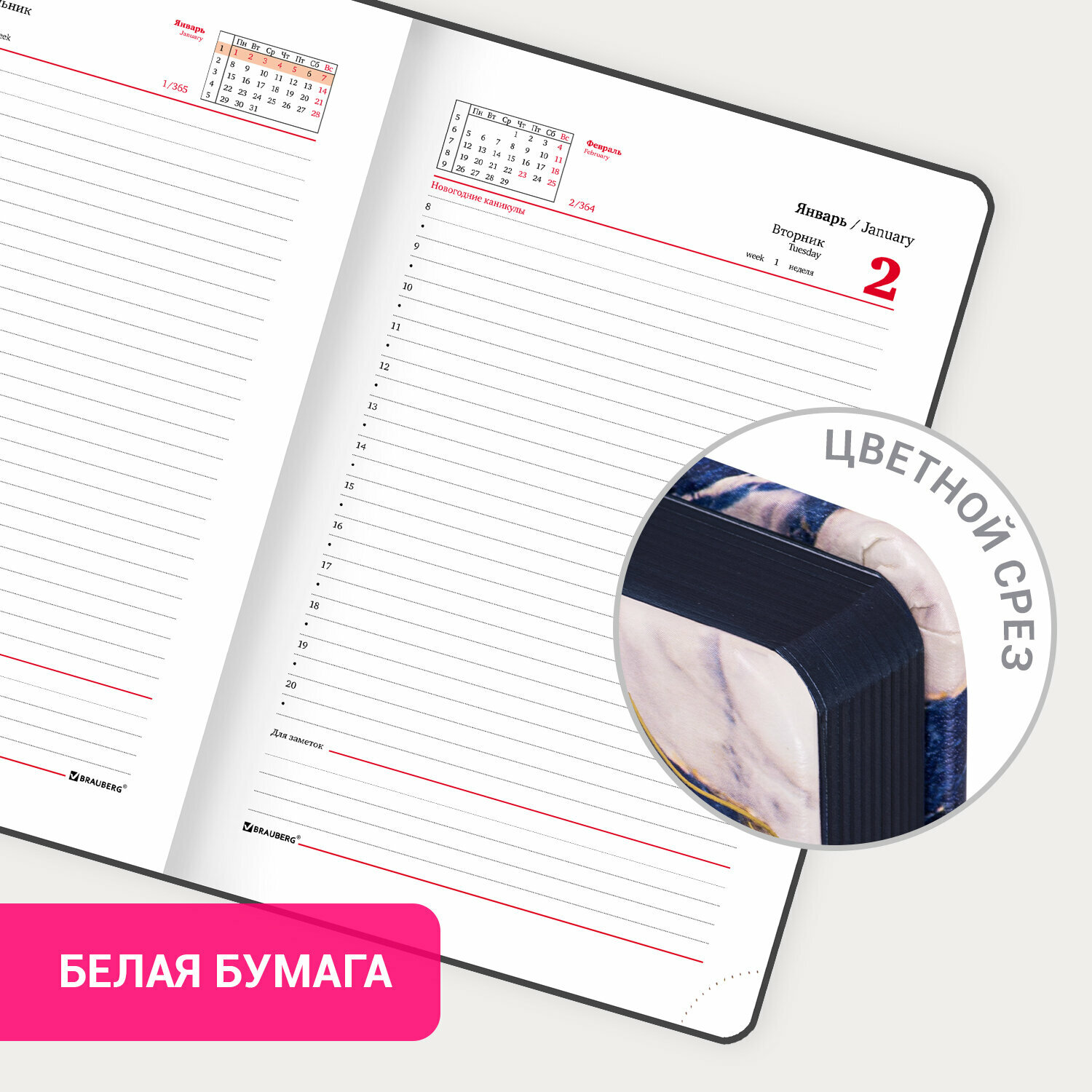 Ежедневник датированный 2024 А5 138x213 мм Brauberg Vista, под кожу твердый, Мрамор, 114953 информация: