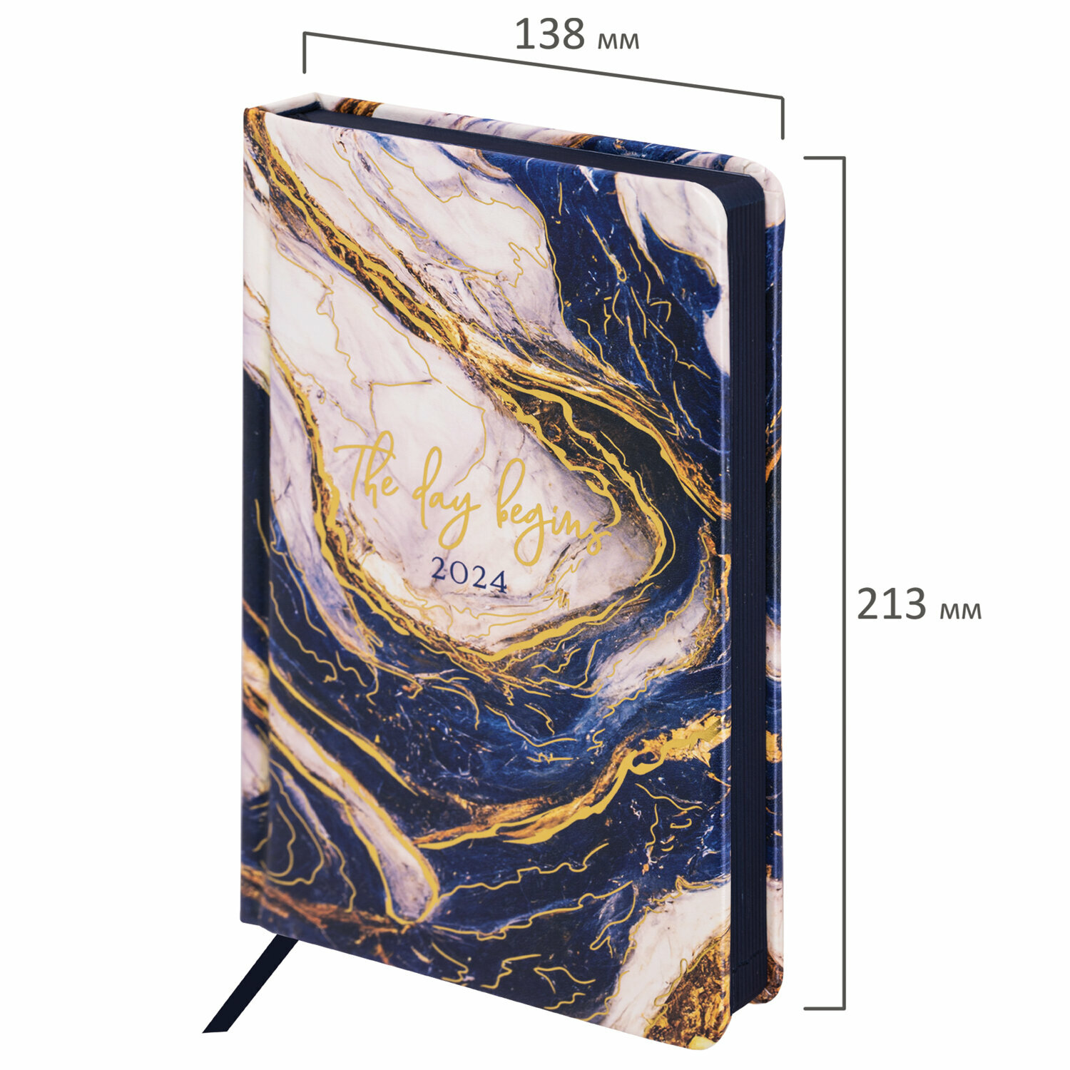 10 цен на Ежедневник датированный 2024 А5 138x213 мм Brauberg Vista, под кожу твердый, Мрамор, 114953