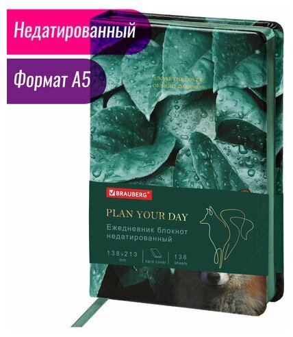 Ежедневник-планер (планинг) недатированный А5 (138х213 мм), Brauberg Vista, под кожу, твердый, 136 л., Thickets, 112028 информация: