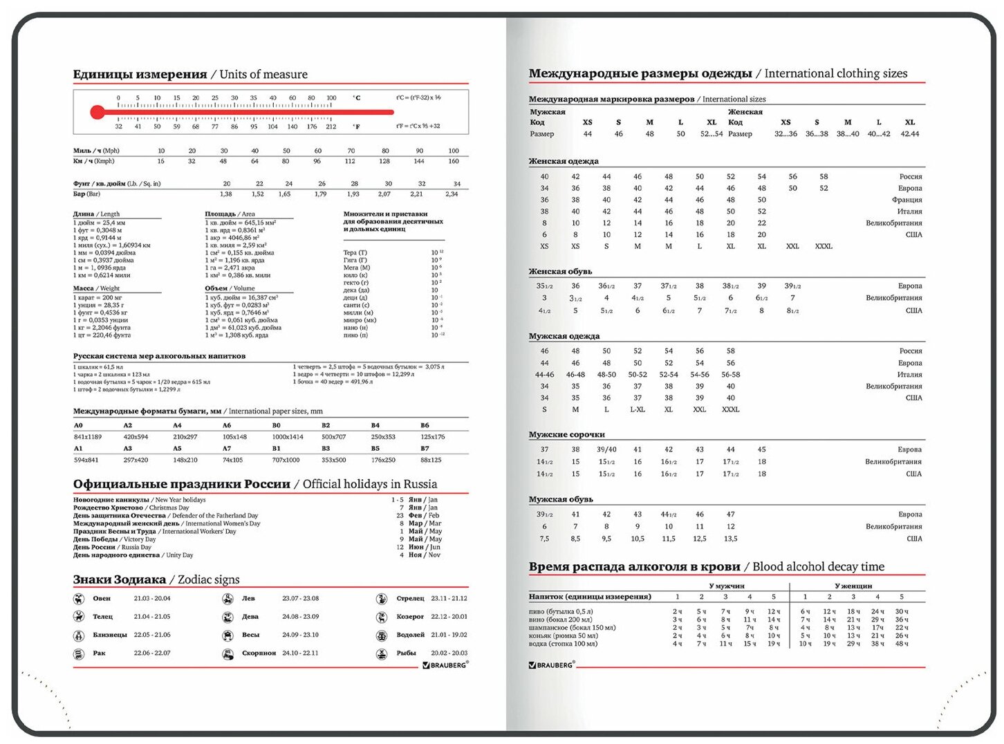 | Особенности | перфорация уголков / справочная информация / ляссе / держатель для ручки / прошивка по периметру обложки / цветной обрез / закругленные углы |