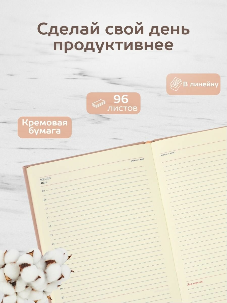 Ежедневник недатированный с ручкой, 128 листов, А5, лавандовый 1 331 ₽