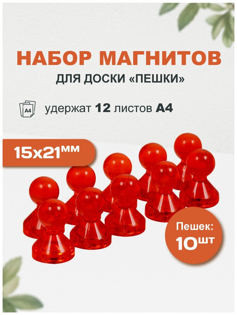10 цен на Неодимовый прозрачный магнит для магнитной доски Пешка Forceberg 15х21 мм, красный, 10 шт