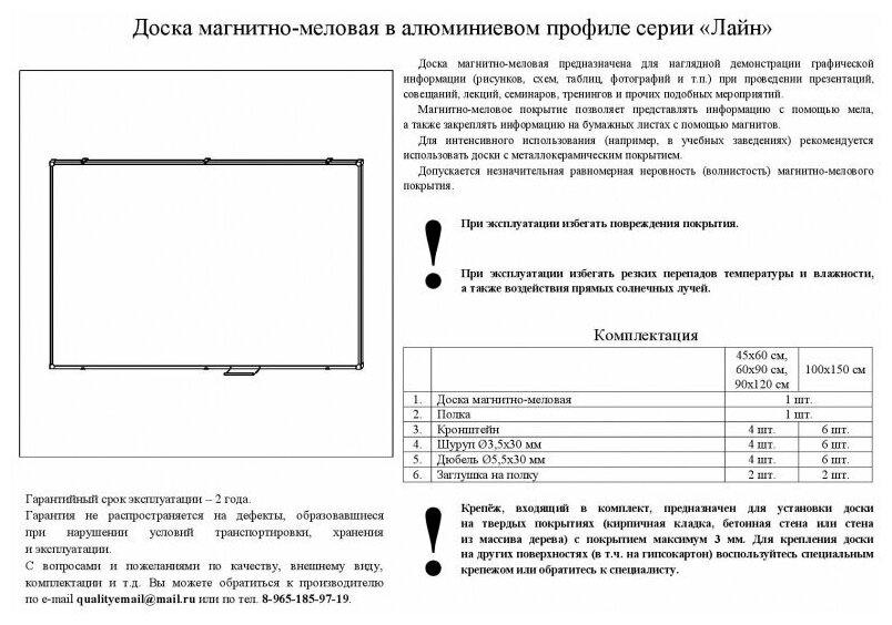 Доска меловая - магнитная зеленая 100х150 ( 2 шт ) информация: