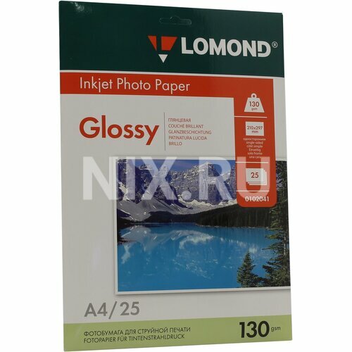 10 цен на Фотобумага Lomond A4 глянцевая, односторонняя, 130 г/м2, 25 листов 0102041