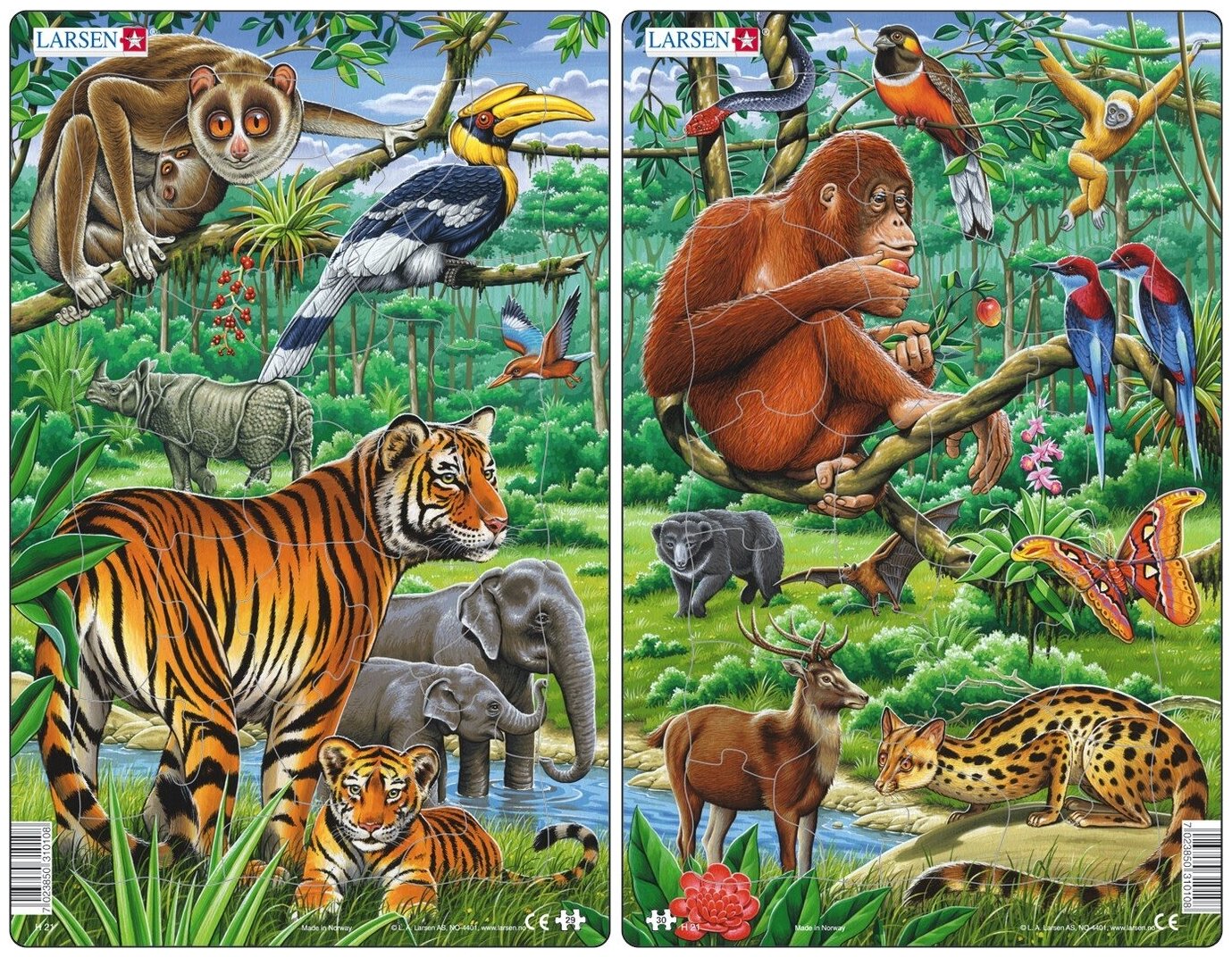 Пазлы для детей Larsen "Джунгли, Индия и Юго-Восточная Азия", в ассортименте, 30 эл., H21 информация:
