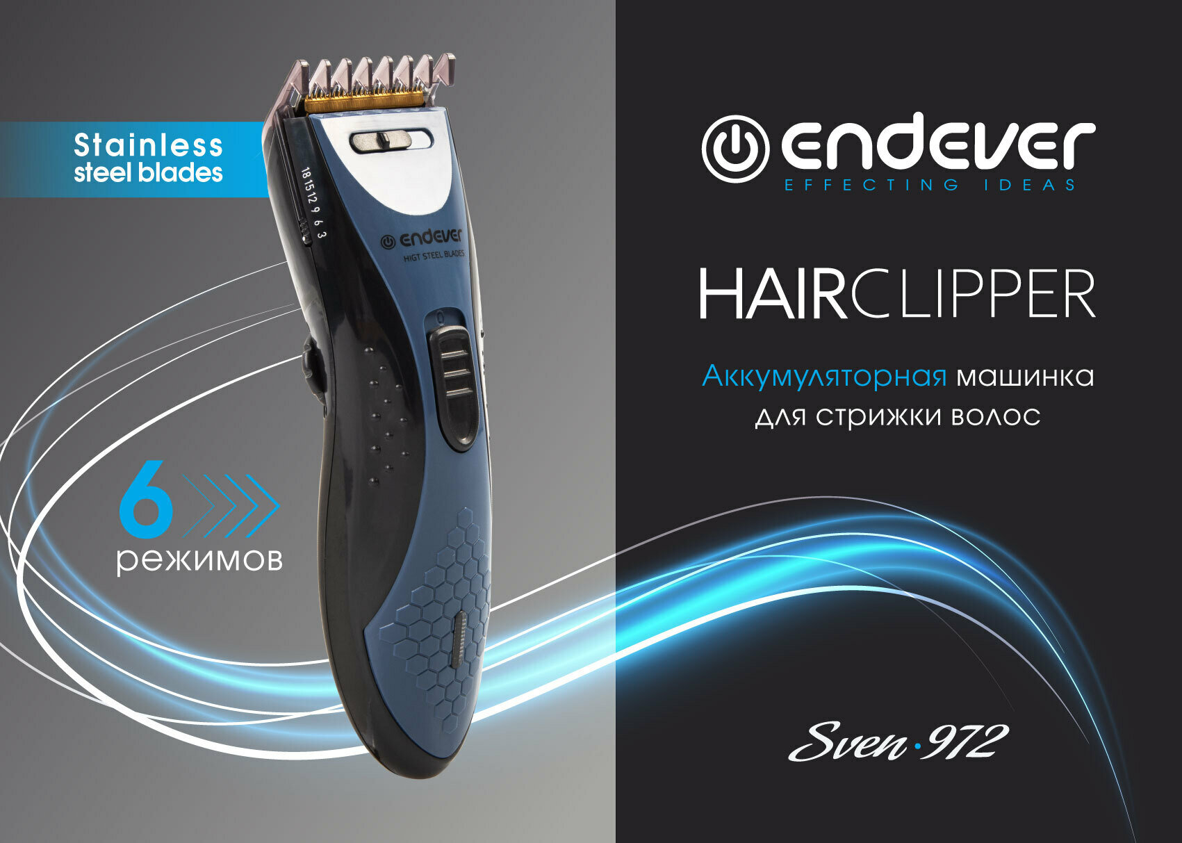 Отзывы на Машинка для стрижки волос и бороды беспроводная Endever SVEN-972, телескопическая насадка 3/6/9/12/15/18 мм, мотор 3 Вт