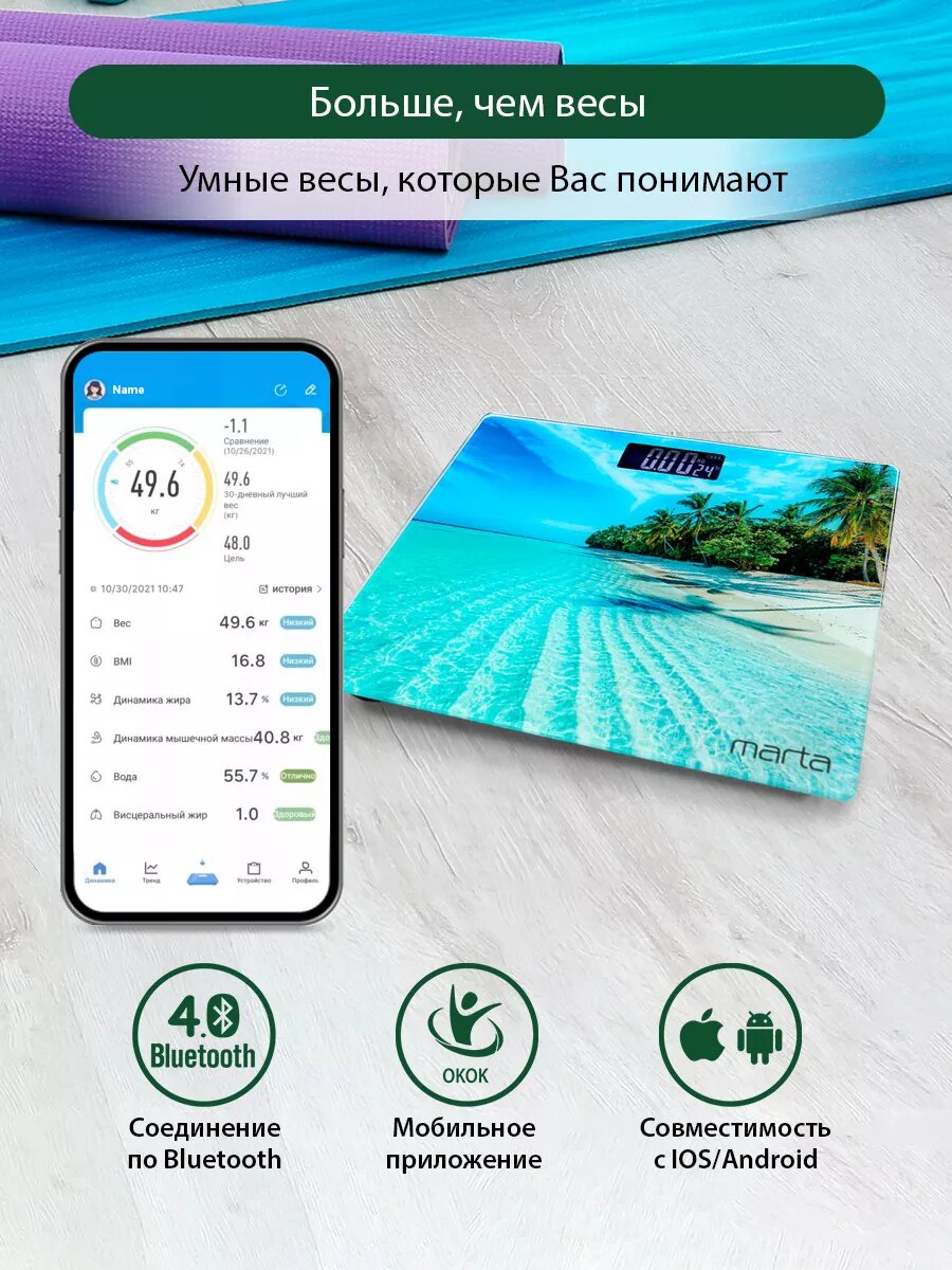 Весы напольные умные MARTA MT-SC1696 море 770 ₽