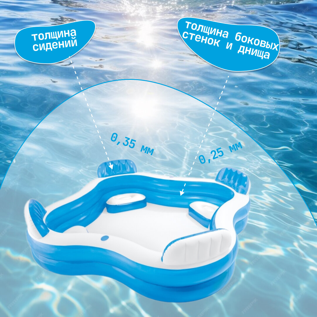 Бассейн надувной Семейный с 4 сиденьями (229х229х66 см) Intex 56475