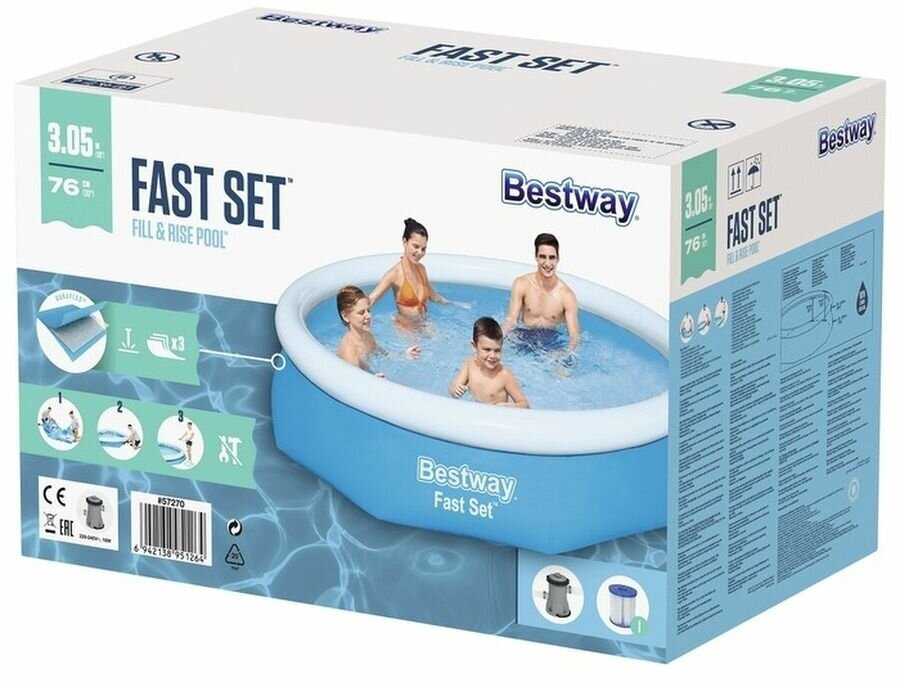 Бассейн надувной Bestway Fast Set, 305×76 см, фильтр-насос, от 6 лет, 57270 9 986 ₽