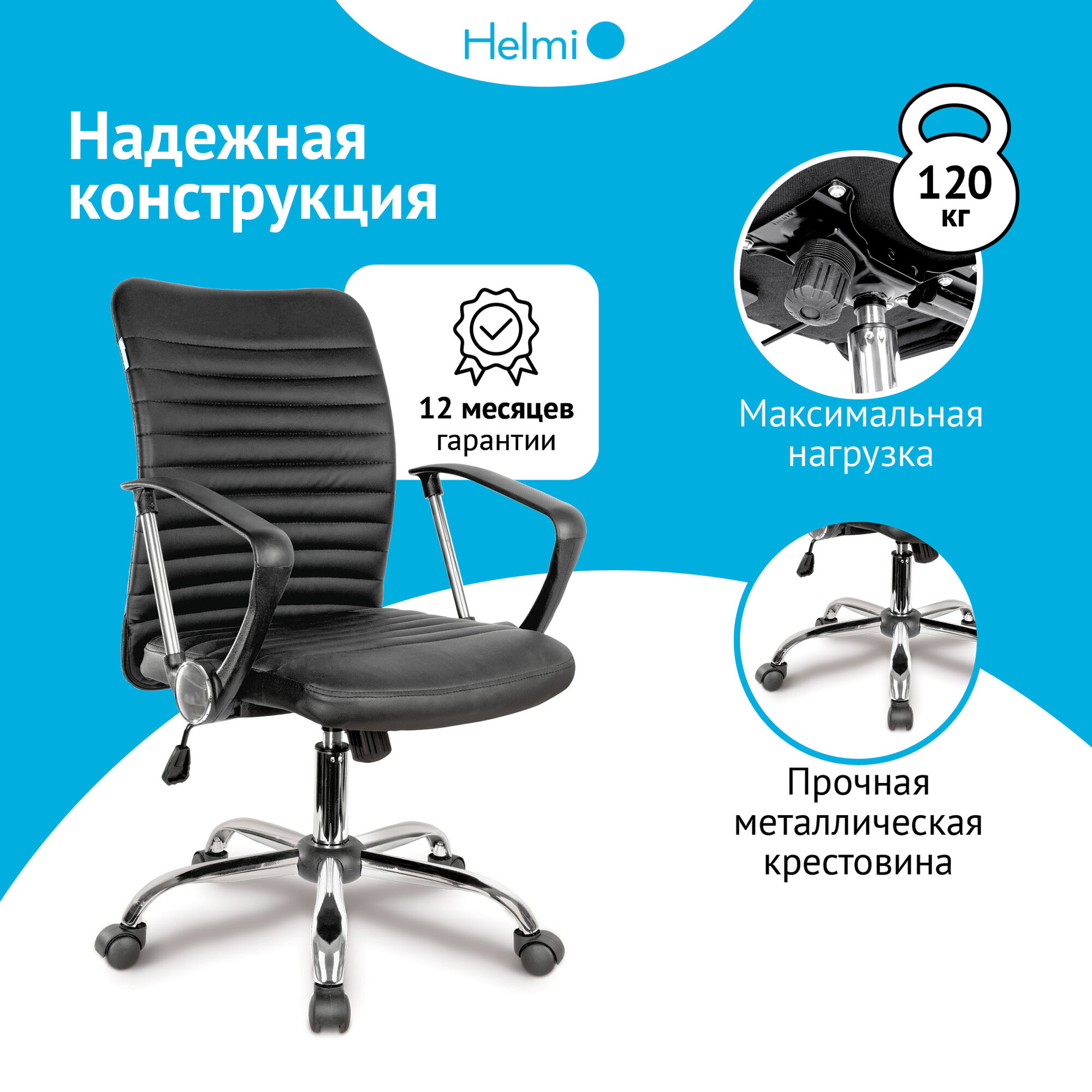 Кресло офисное Helmi HL-M09 LUX, искусственная кожа черная, механизм качания, хром 10 345 ₽