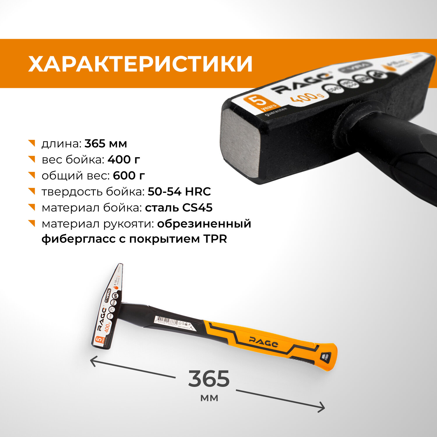 Молоток строительный слесарный 400 г RAGE by VIRA информация: