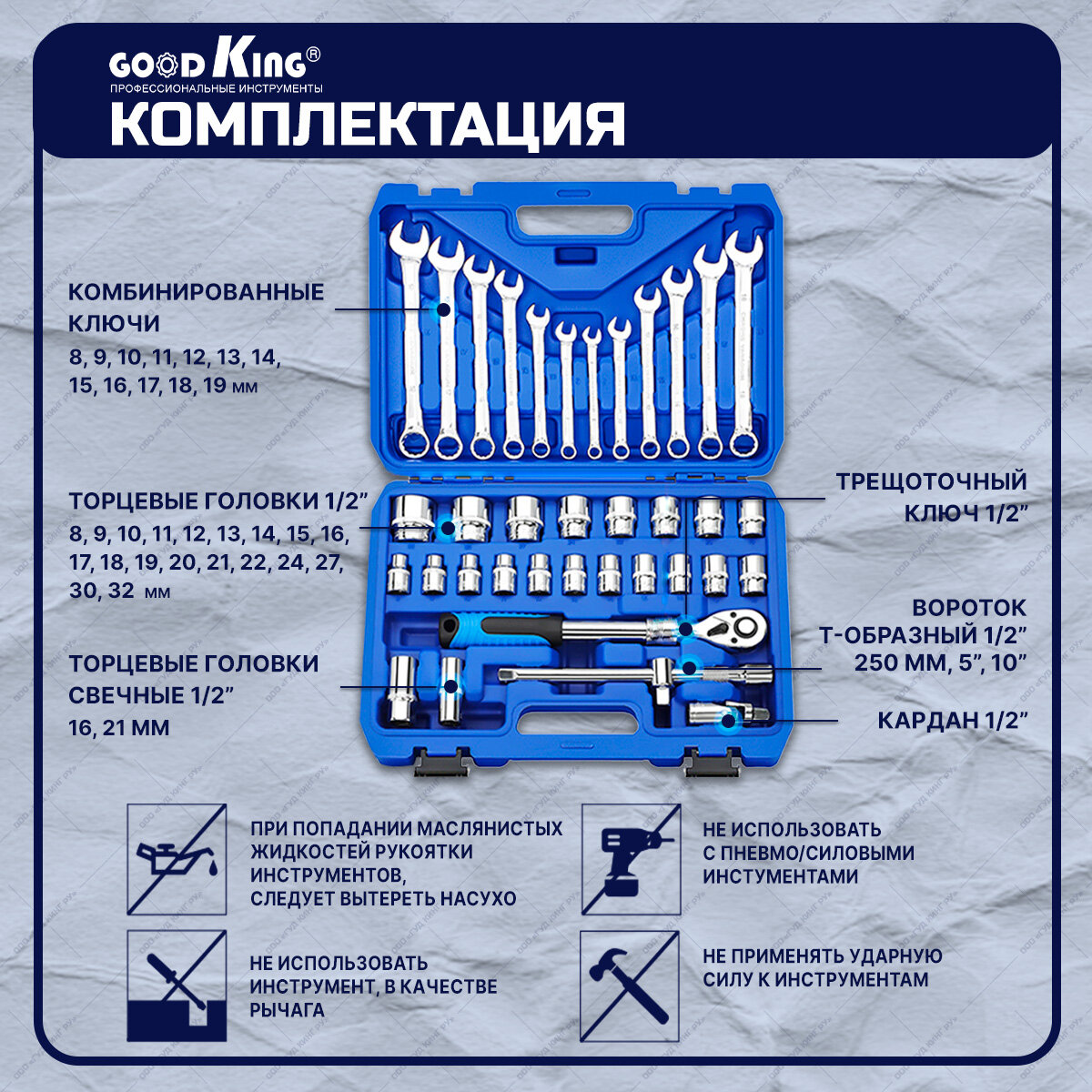 Отзывы на Набор инструментов GOODKING, 37 предметов, телескопическая трещотка