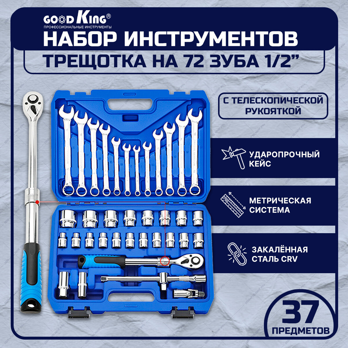 Набор инструментов GOODKING, 37 предметов, телескопическая трещотка информация: