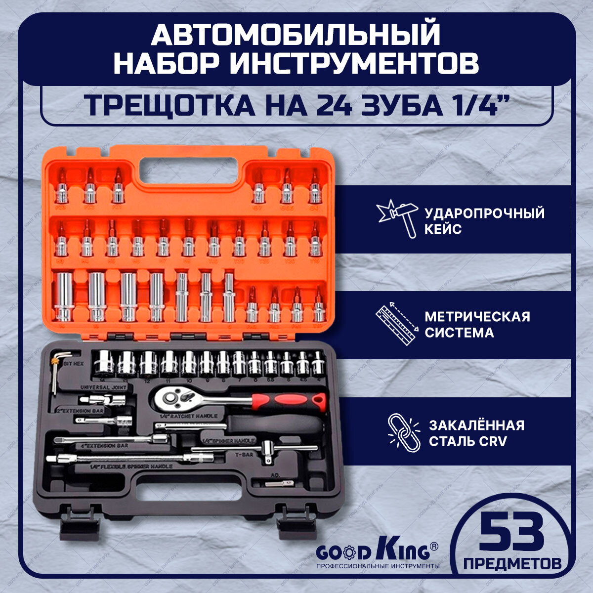 Набор инструментов KINGQUEEN для автомобиля, 116 предметов в кейсе, сталь CRV