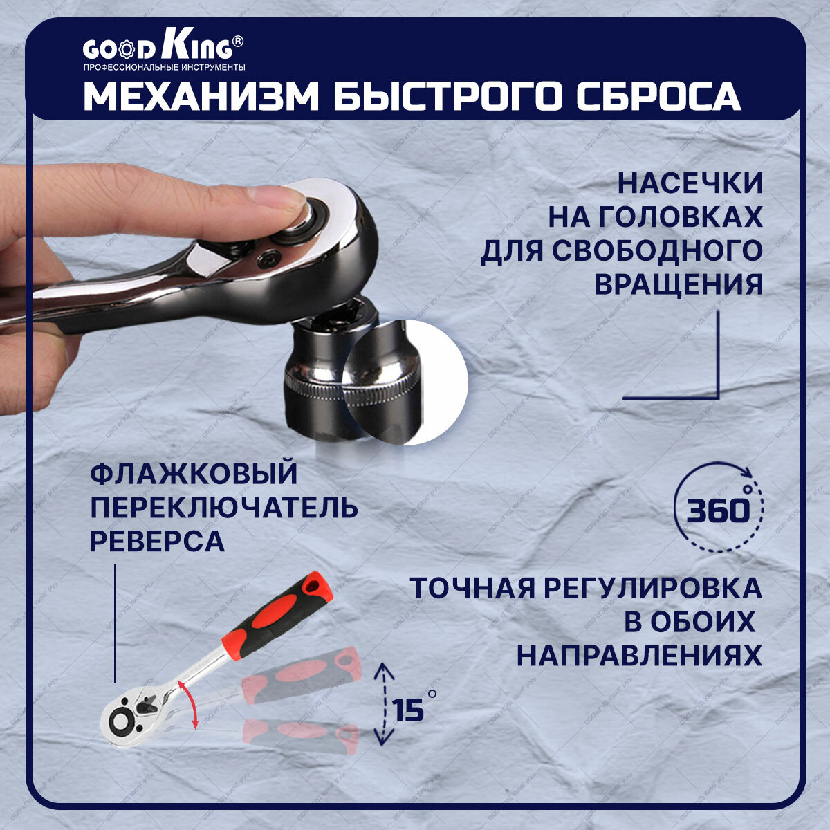 | Аксессуары в комплекте | удлинитель для головок / гибкий удлинитель для головок / шарнир карданный для головок |