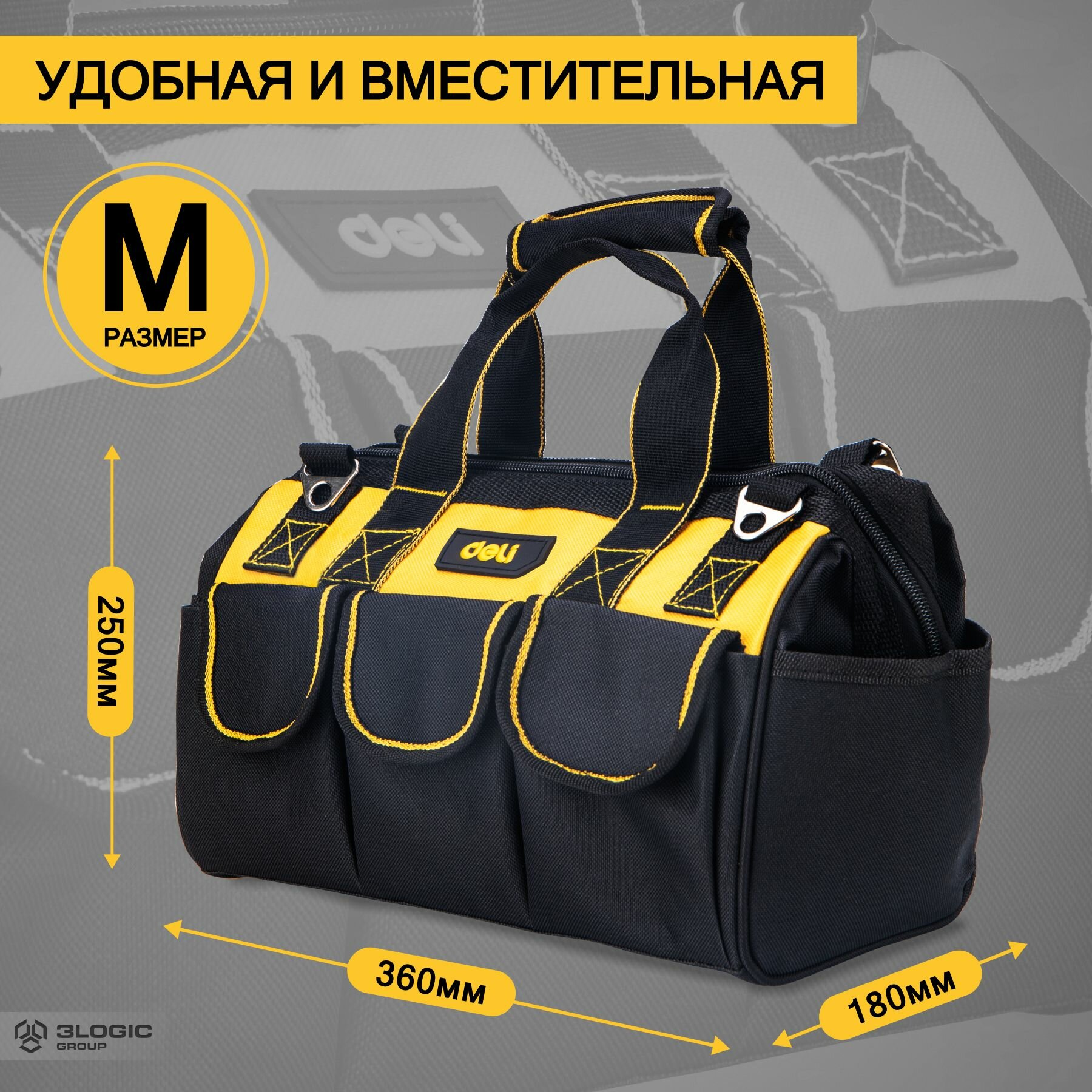 10 цен на Сумка для инструментов Deli DL430116 360x180x250мм 14 карманов, водоотталкивающая ткань Oxford, плечевой ремень
