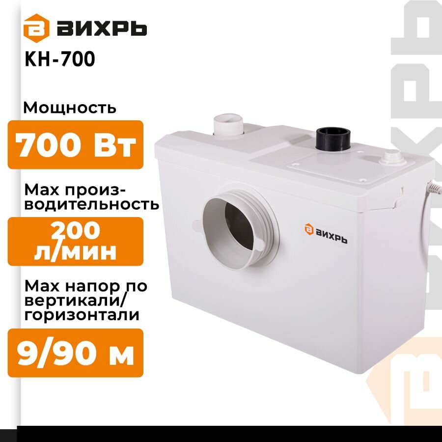 Канализационный насос КН-700 Вихрь (700 Вт, 200 л/мин, по вертикали 9 м, по горизонтали 90 м, 2 входа, до +60 С) 20 690 ₽