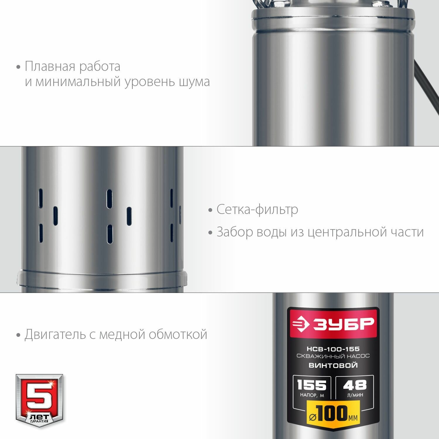10 цен на Насос скважинный ЗУБР НСВ-100-155 винтовой
