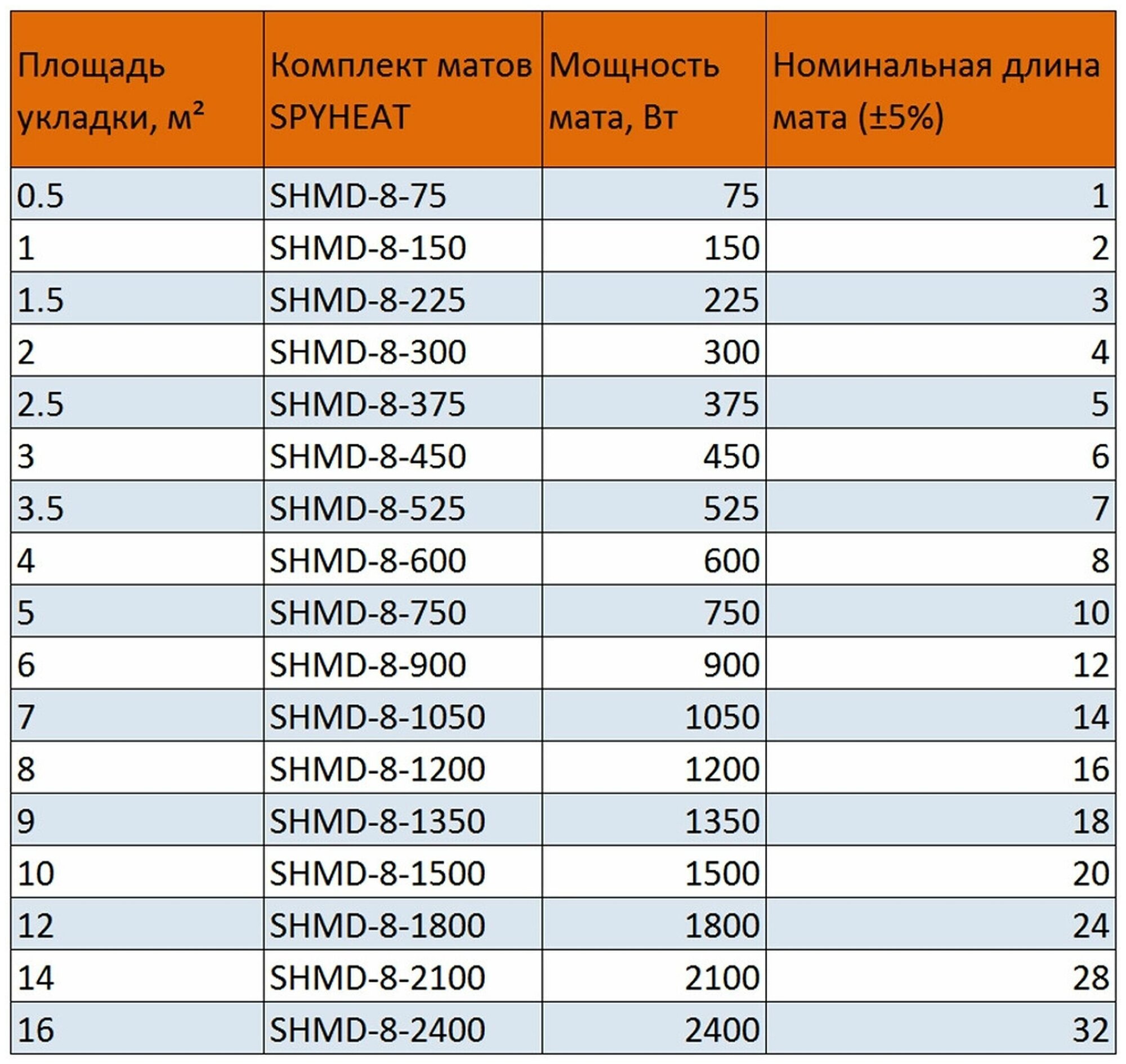 Мат теплого пола SPYHEAT SHMD-8-900 площадь укладки 6 кв.м, мощность 900 Вт