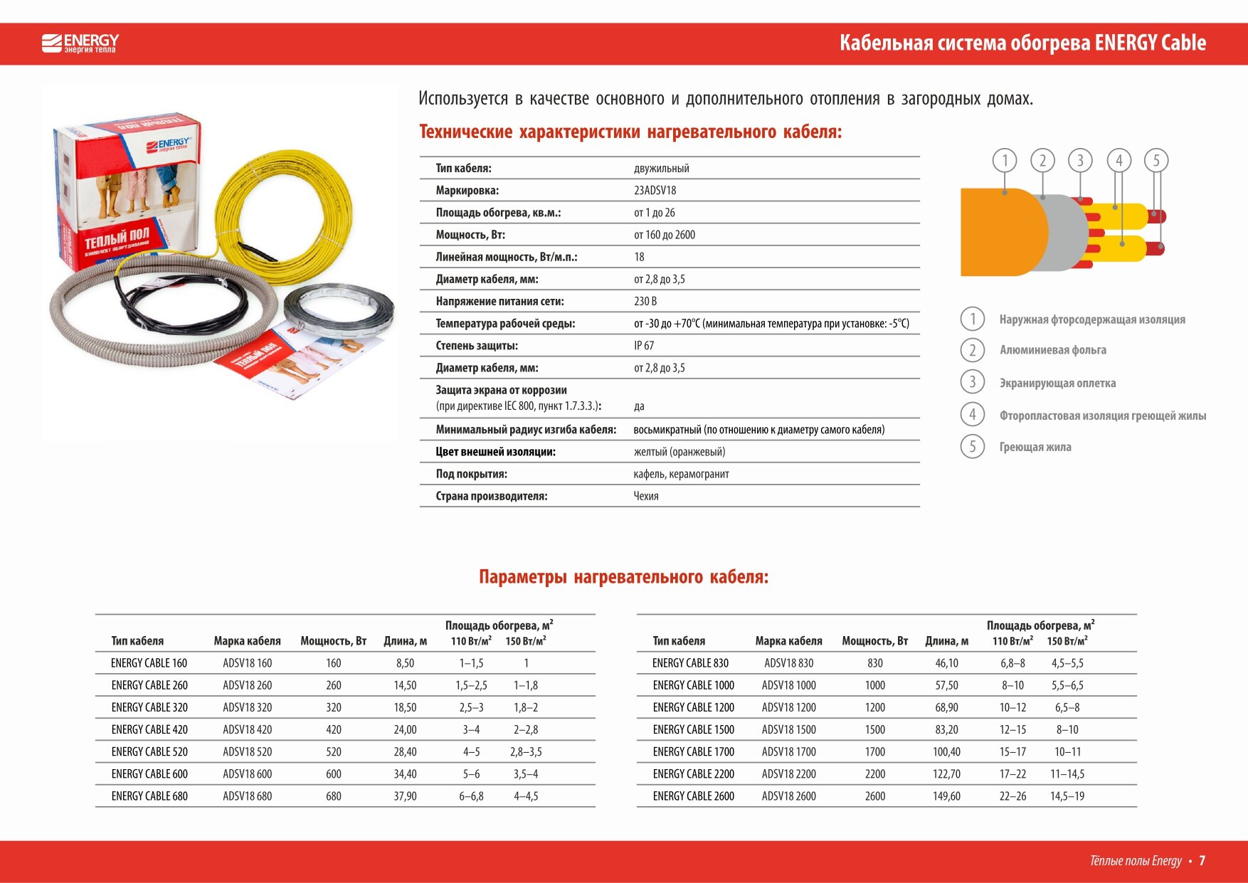 10 цен на Электрический греющий кабель в стяжку Energy Cable 160 Вт, длина 8,5 метра, площадь обогрева 1,0-1,5 м²