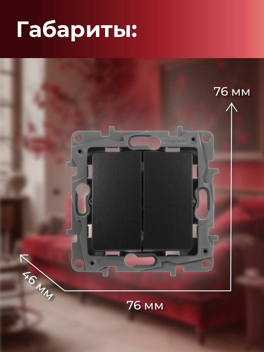 Выключатель двухклавишный (Антацит) 10А, 250В, Legrand Etika (комплект 3шт) информация:
