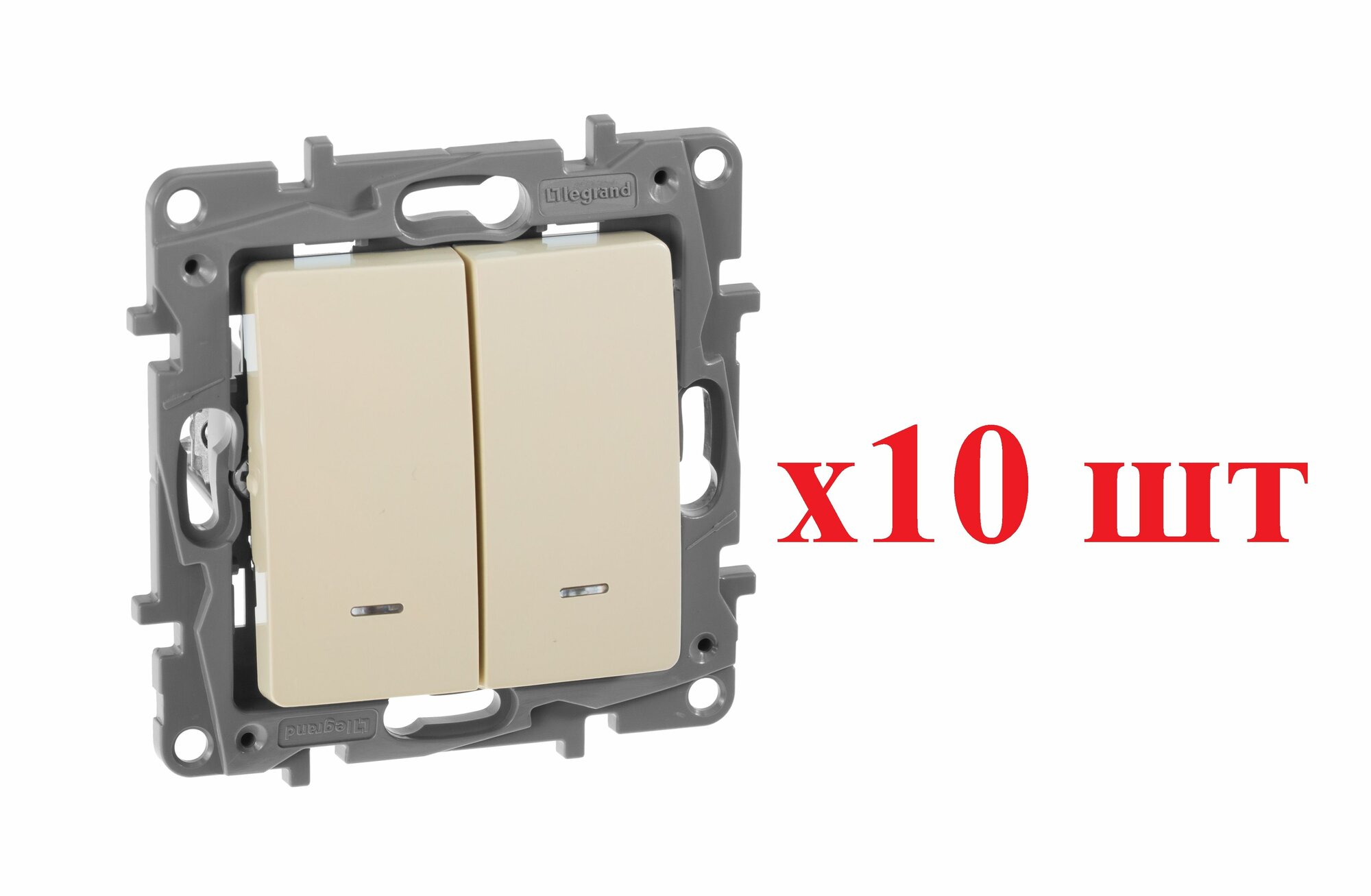 10 цен на Выключатель 2-клавишный ETIKA, с подсветкой, скрытый монтаж, слоновая кость | код. 672304 | Legrand (10шт.в упак.)