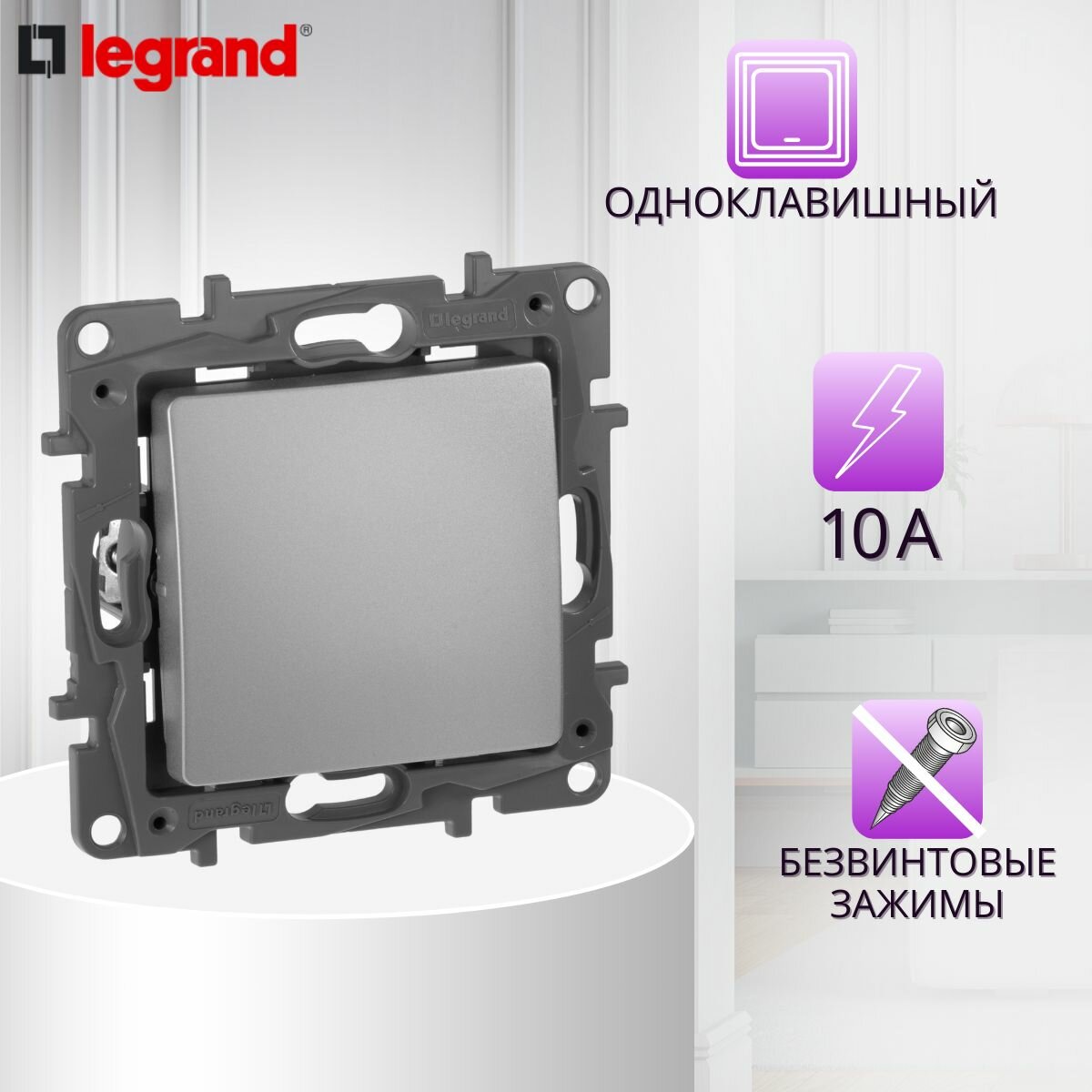 10 цен на Выключатель одноклавишный, автоматические клеммы 10 AX 250В, алюминий | код 672401 | Legrand (3шт.в упак.)