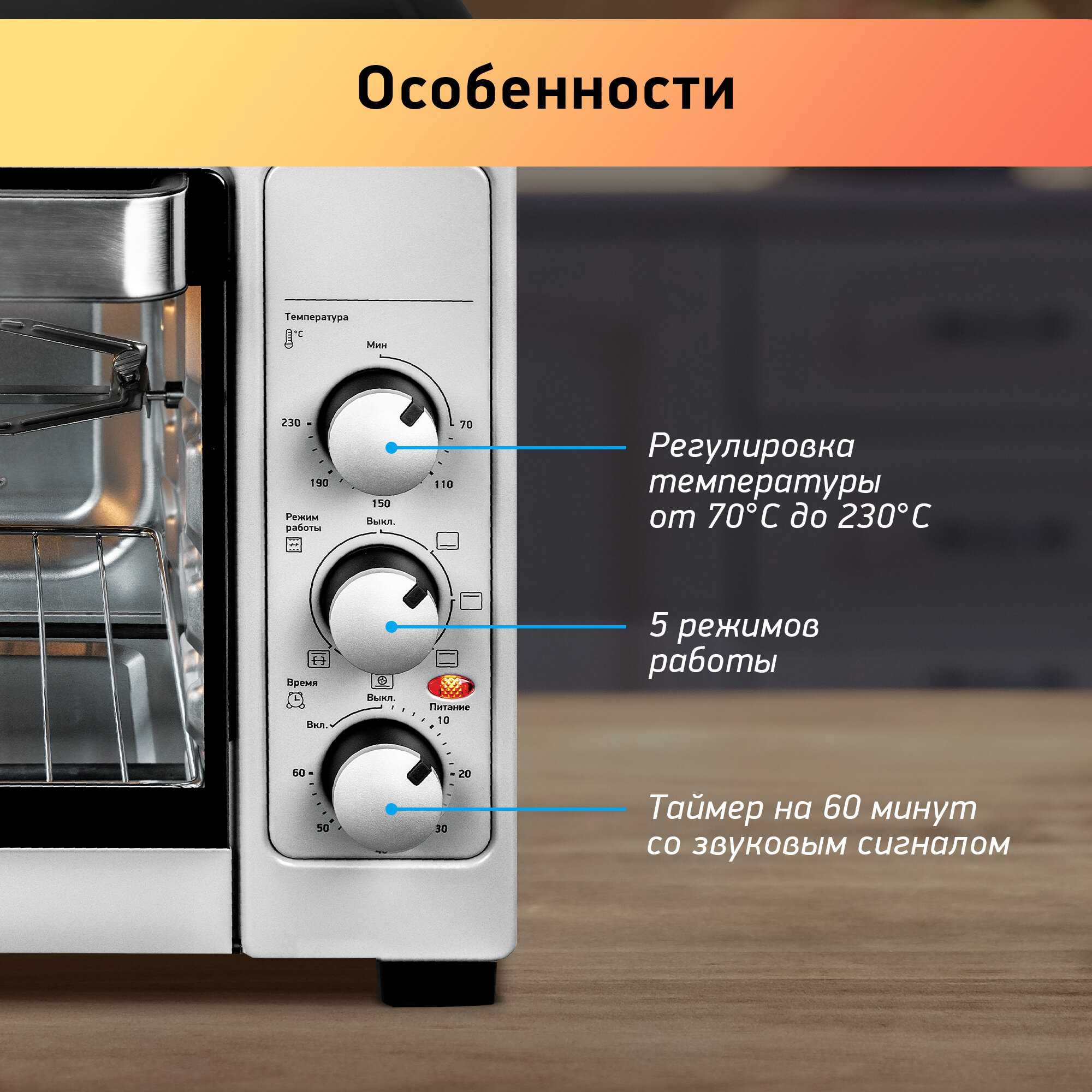 Мини-печь SIMFER M3426ТВ, 3 режима работы, 2 противня, серая