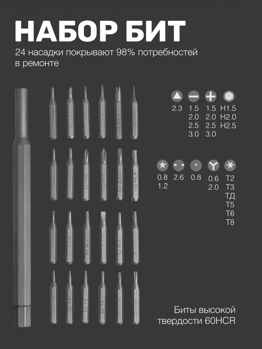Профессиональный набор отверток с магнитными насадками 24 в 1 , Отвертка с битами , Для телефона, планшета, ноутбука, и точных работ с набором бит информация: