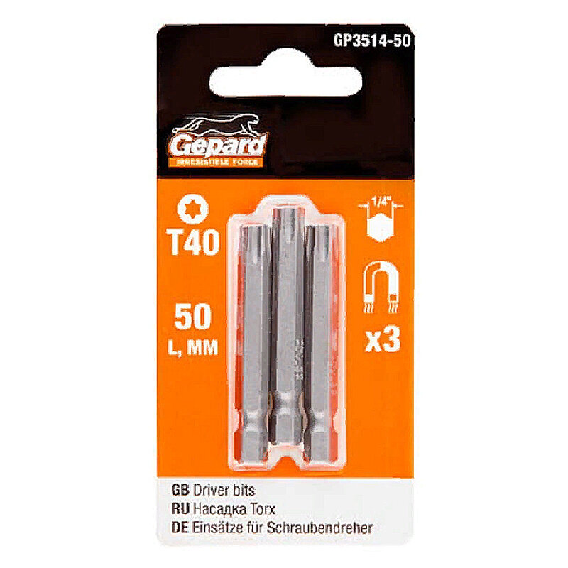 Бита для шуруповерта магнитная Torx T40 50 мм 3 штуки GEPARD (GP3514-50)