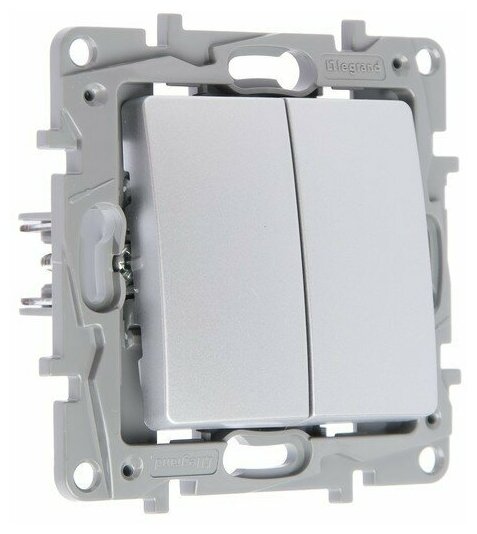 Отзывы на Переключатель двухклавишный (Алюминий) 10А, 250В, Legrand Etika