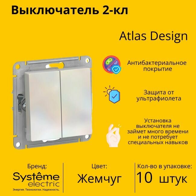 Выключатель электрический Systeme Electric Atlas Design 2-клавишный, 10А, 10 AX, Жемчуг ATN000451 -10 шт. информация: