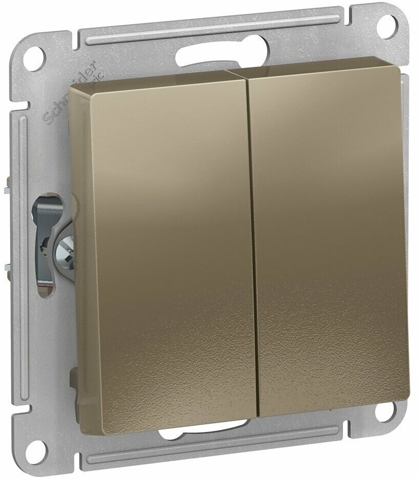 10 цен на Механизм выключателя (переключатель проходной) Schneider Electric AtlasDesign, 2 клавиши, Шампань (комплект из 2шт)