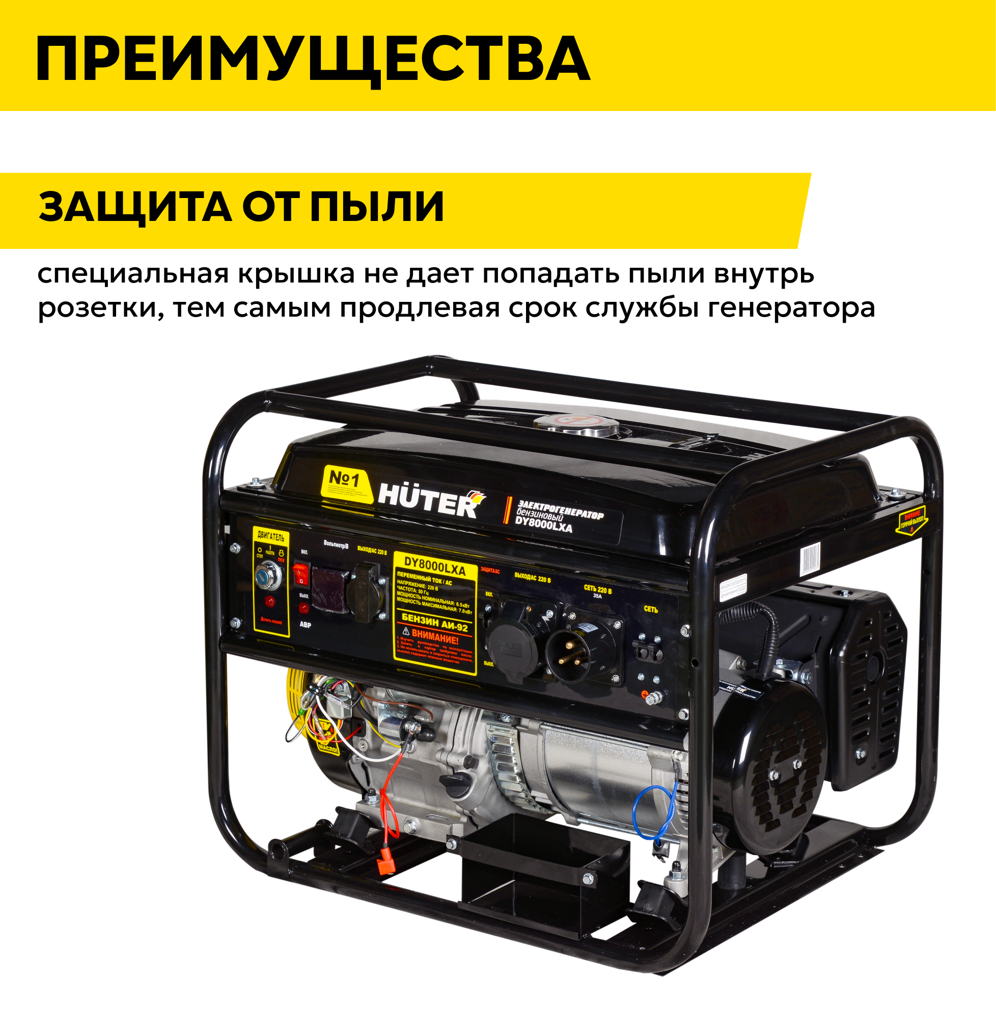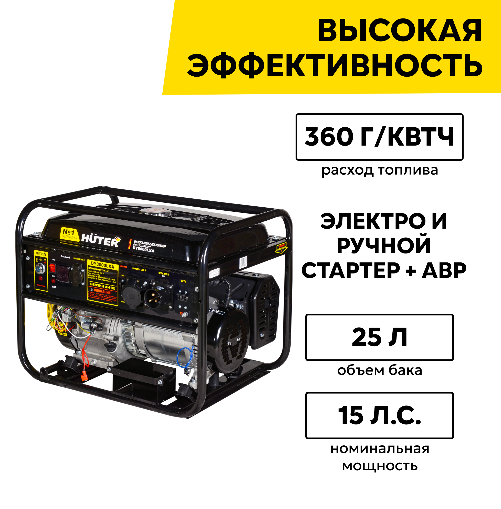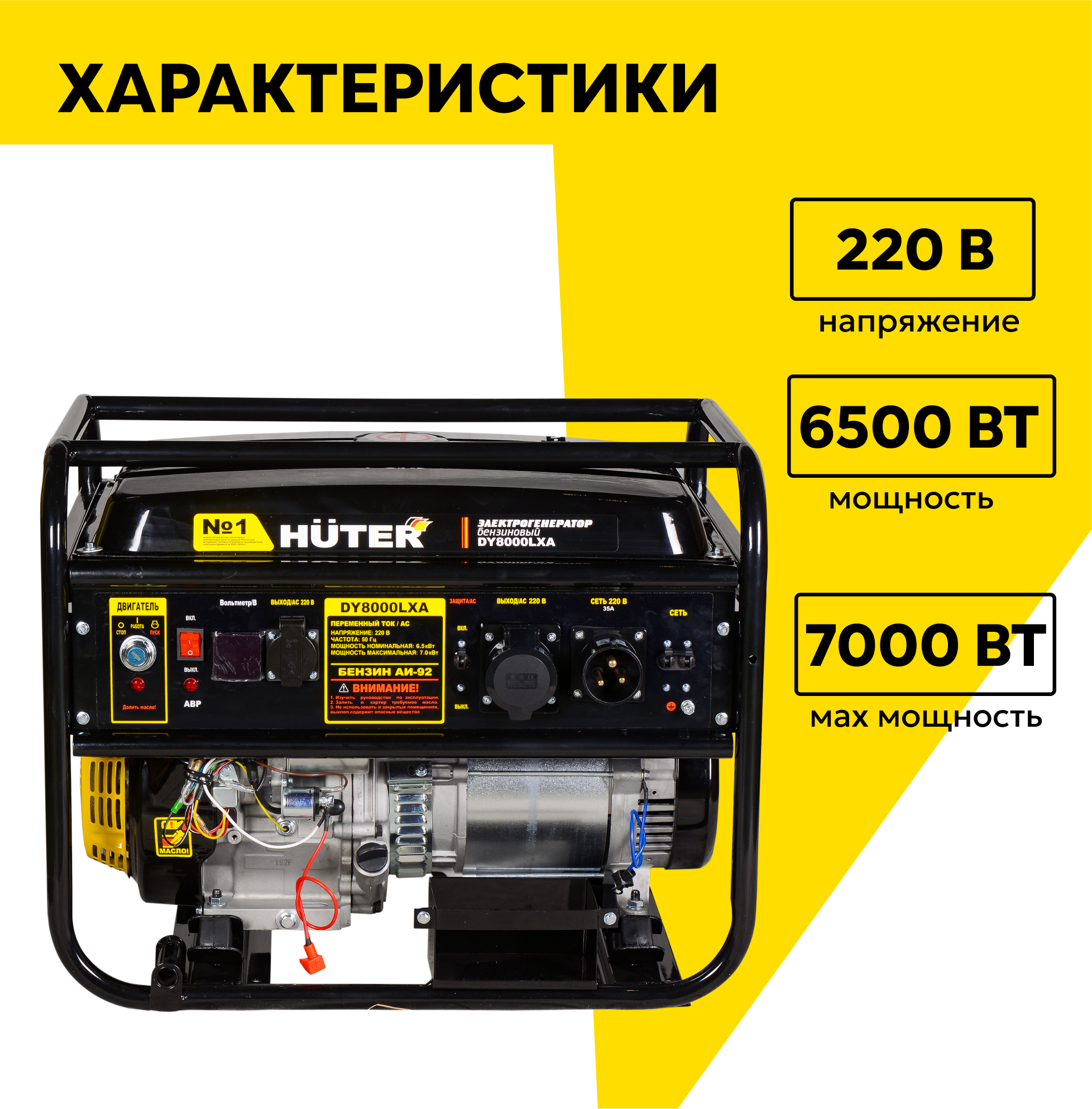 10 цен на Бензиновый генератор HUTER 8000LXA 6,5кВт запуск электрический/ручной/автоматический