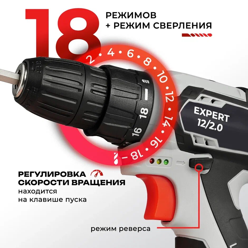 Аккумуляторный шуруповерт Electrolite Expert 12/2.0 (кейс, быстрозажимной патрон) информация: