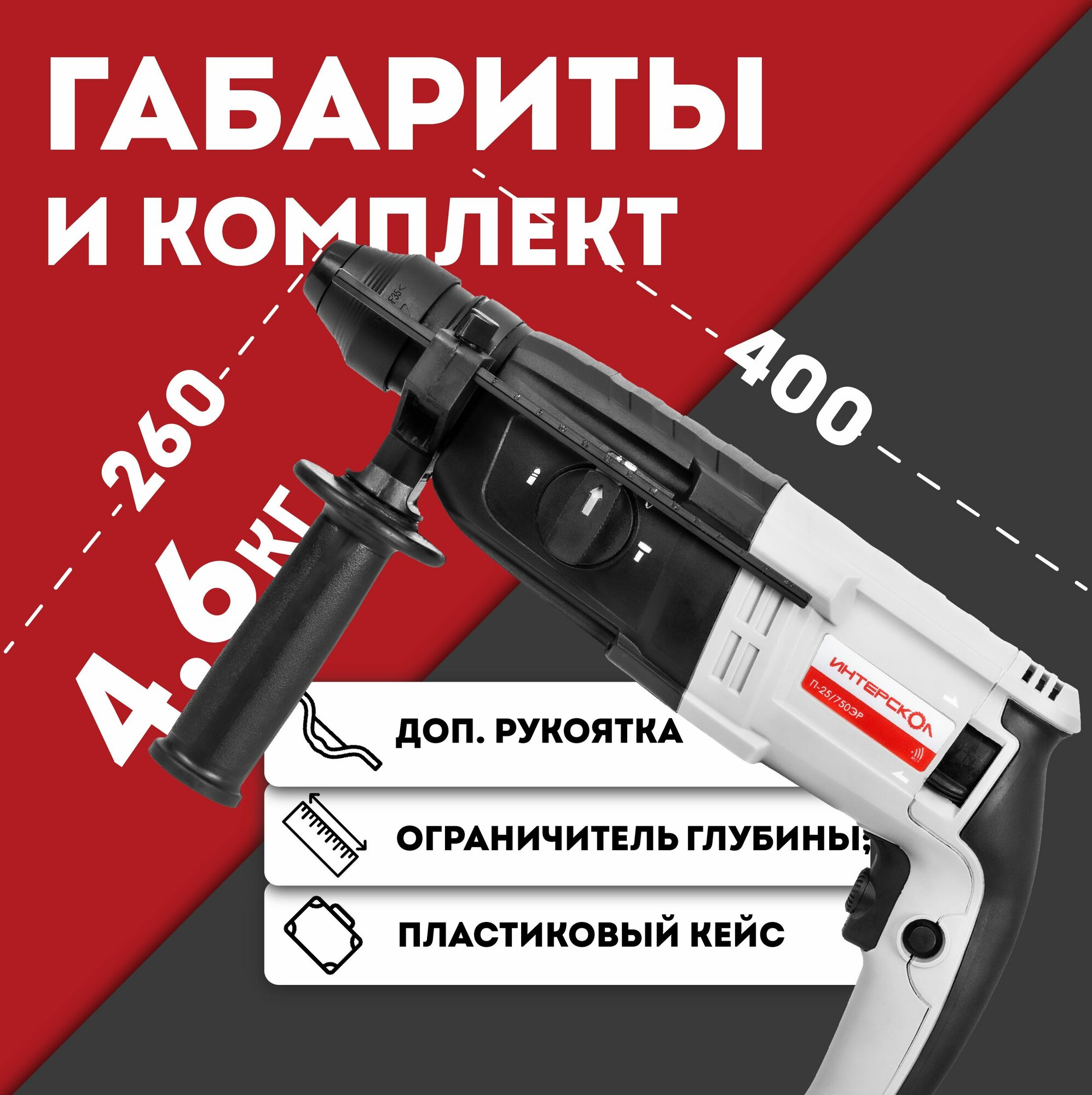 Сетевой перфоратор ИНТЕРСКОЛ П-25/750ЭР (3 режима, SDS-plus, 750 Вт, 2.6 Дж, 1350 об/мин, 5500 уд/мин) - 733.1.0.70 информация: