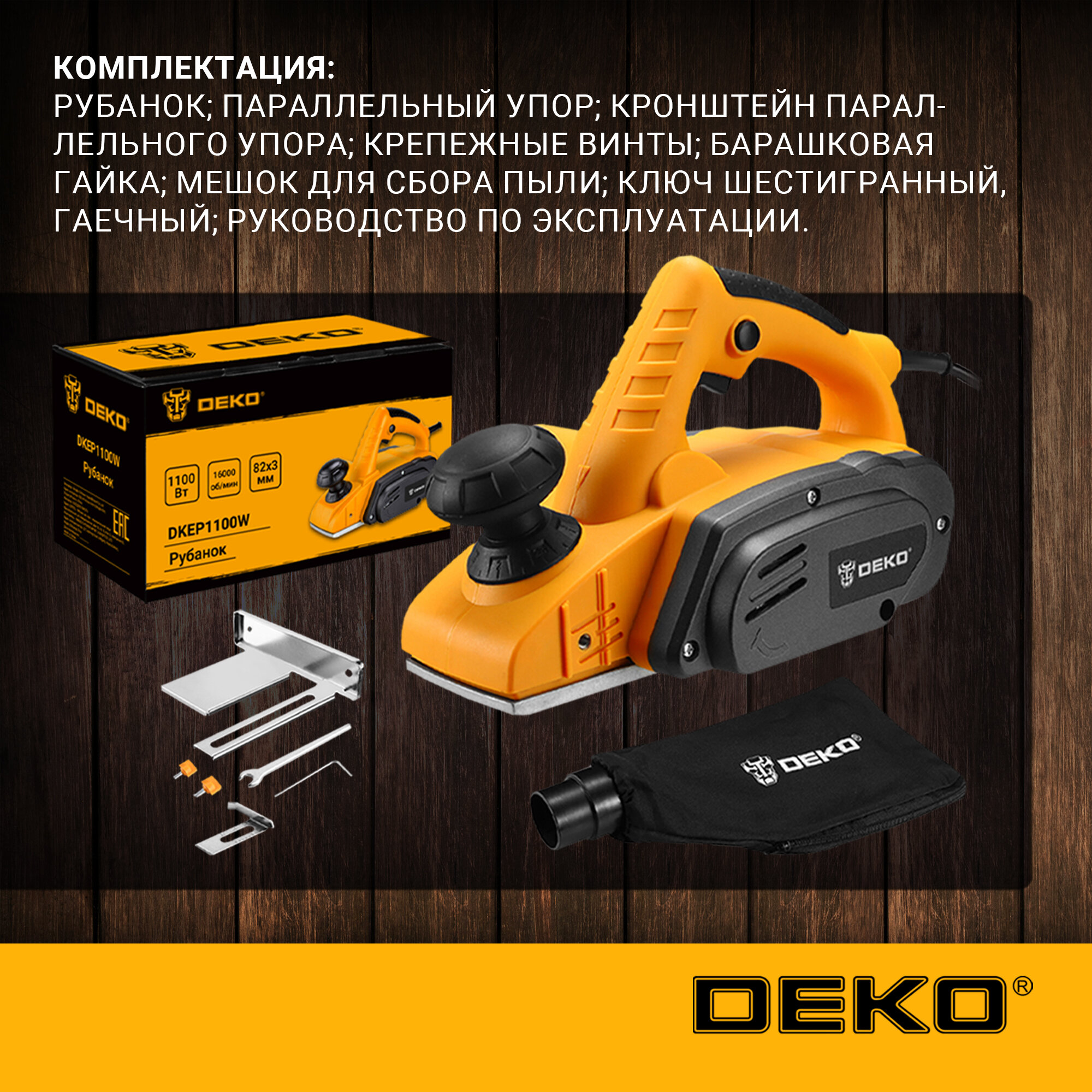 Сетевой электрорубанок DEKO DKEP1100W, 1100Вт, черный/желтый информация: