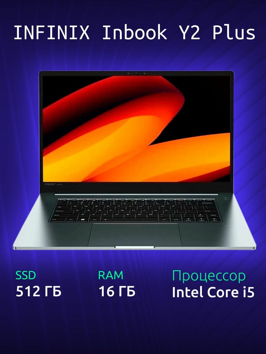 Ноутбук Infinix Inbook Y2 Plus 11TH XL29, 15.6", IPS, Intel Core i5 1155G7, LPDDR4x 8ГБ, SSD 256ГБ, Intel Iris Xe graphics, серый (71008301405) 45 290 ₽