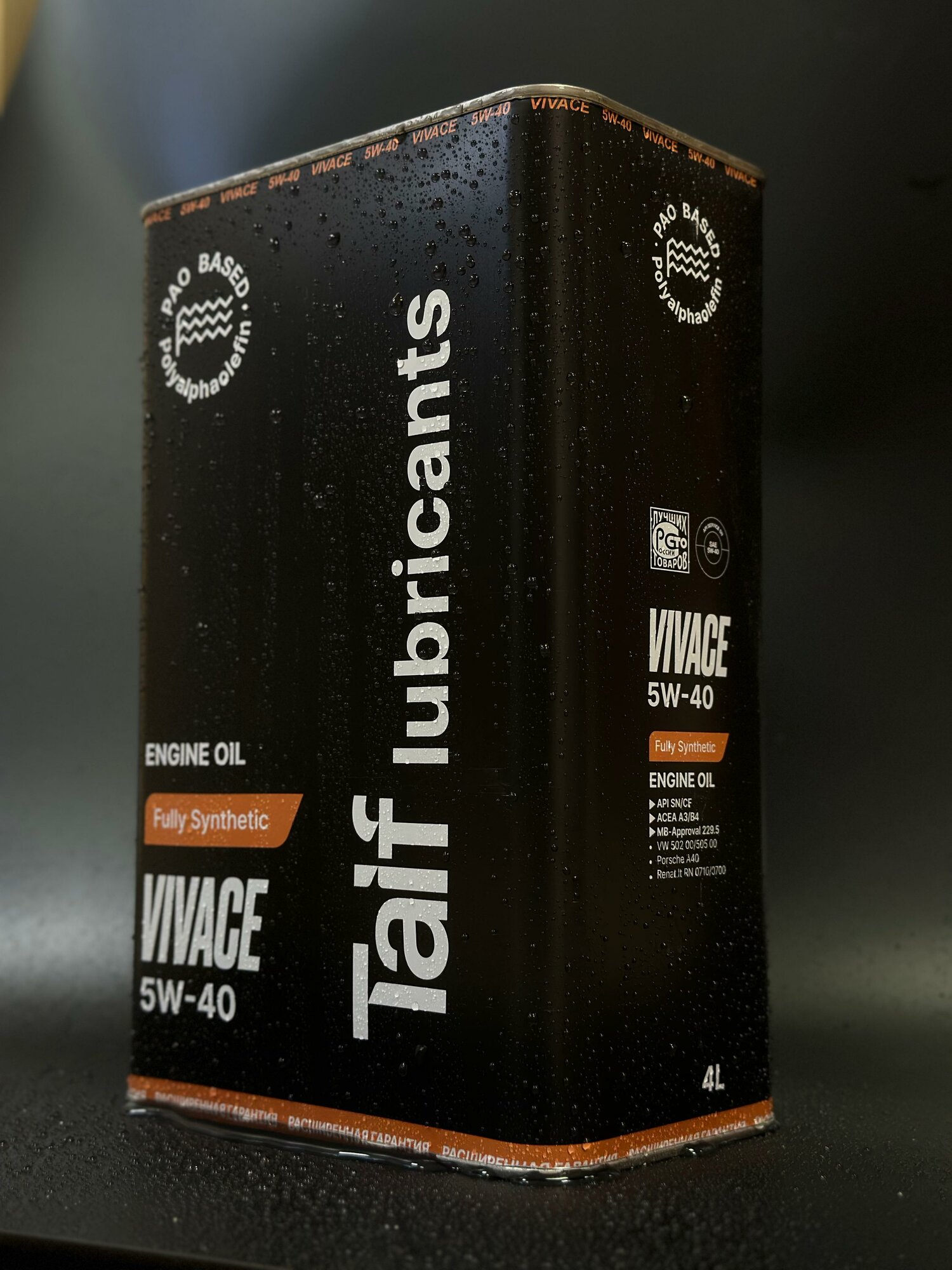 Моторное масло TAIF VIVACE 5W-40 Синтетическое, ПАО, A3/B4, SN/CF, 4 л
