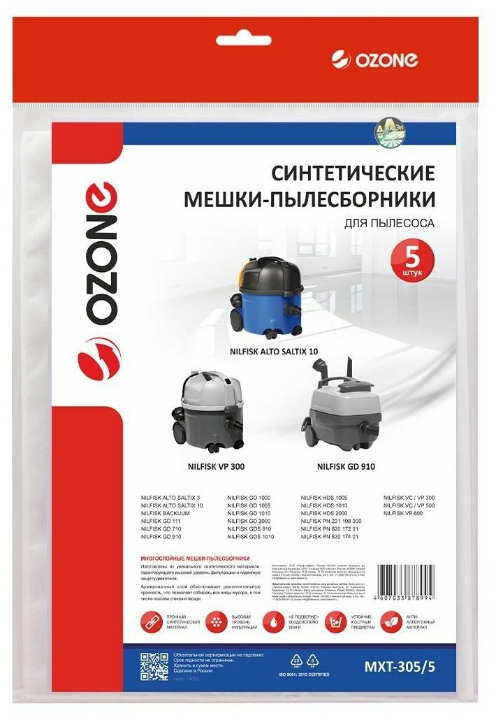 Отзывы на Ozone MXT-305/5 Мешки для пылесоса NILFISK GD(S) 910,1010, 5 шт., синтетические