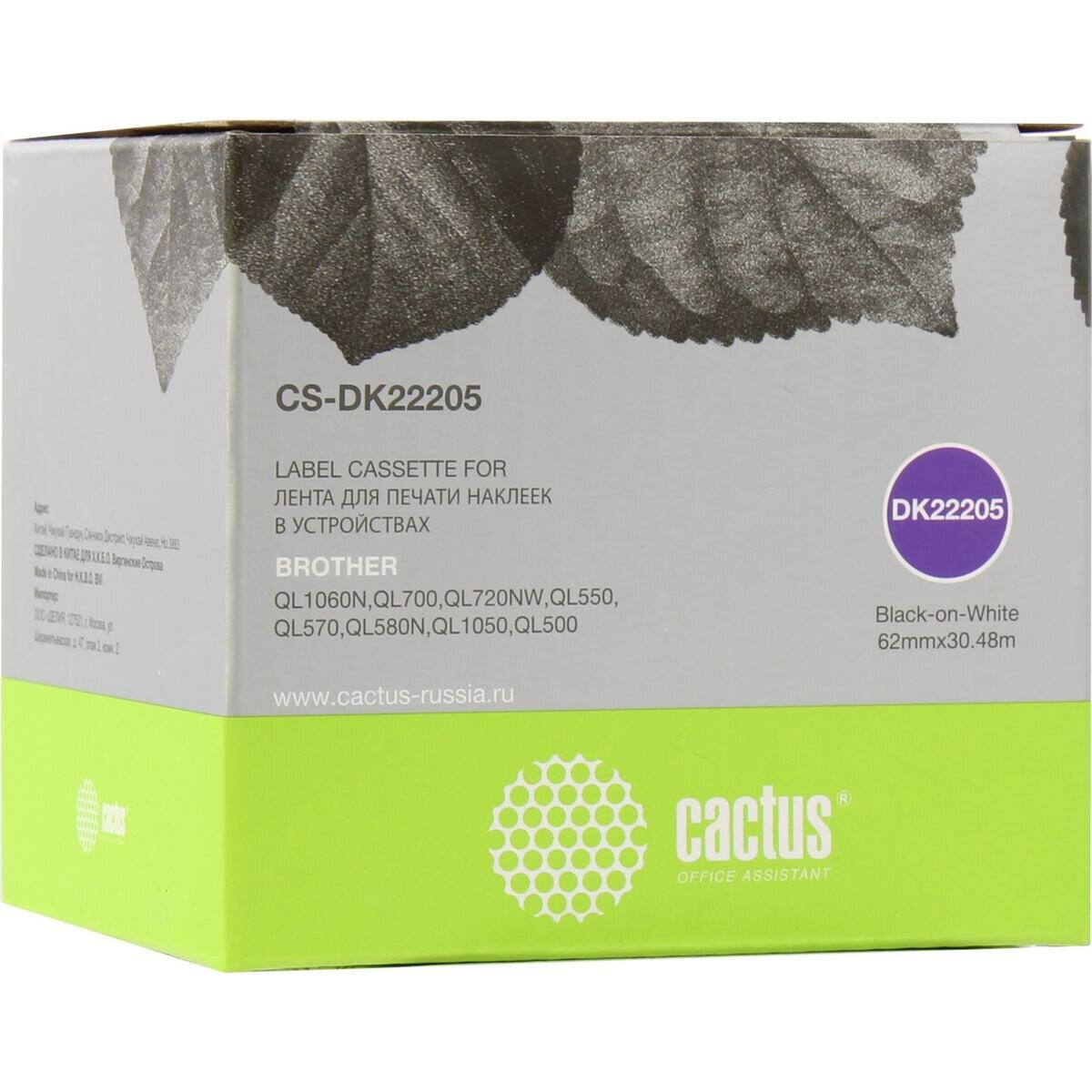 Картридж Cactus CS-DK22205, DK-22205, черный / 62мм, черный шрифт, белый фон, 30.48м ( CS-DK22205