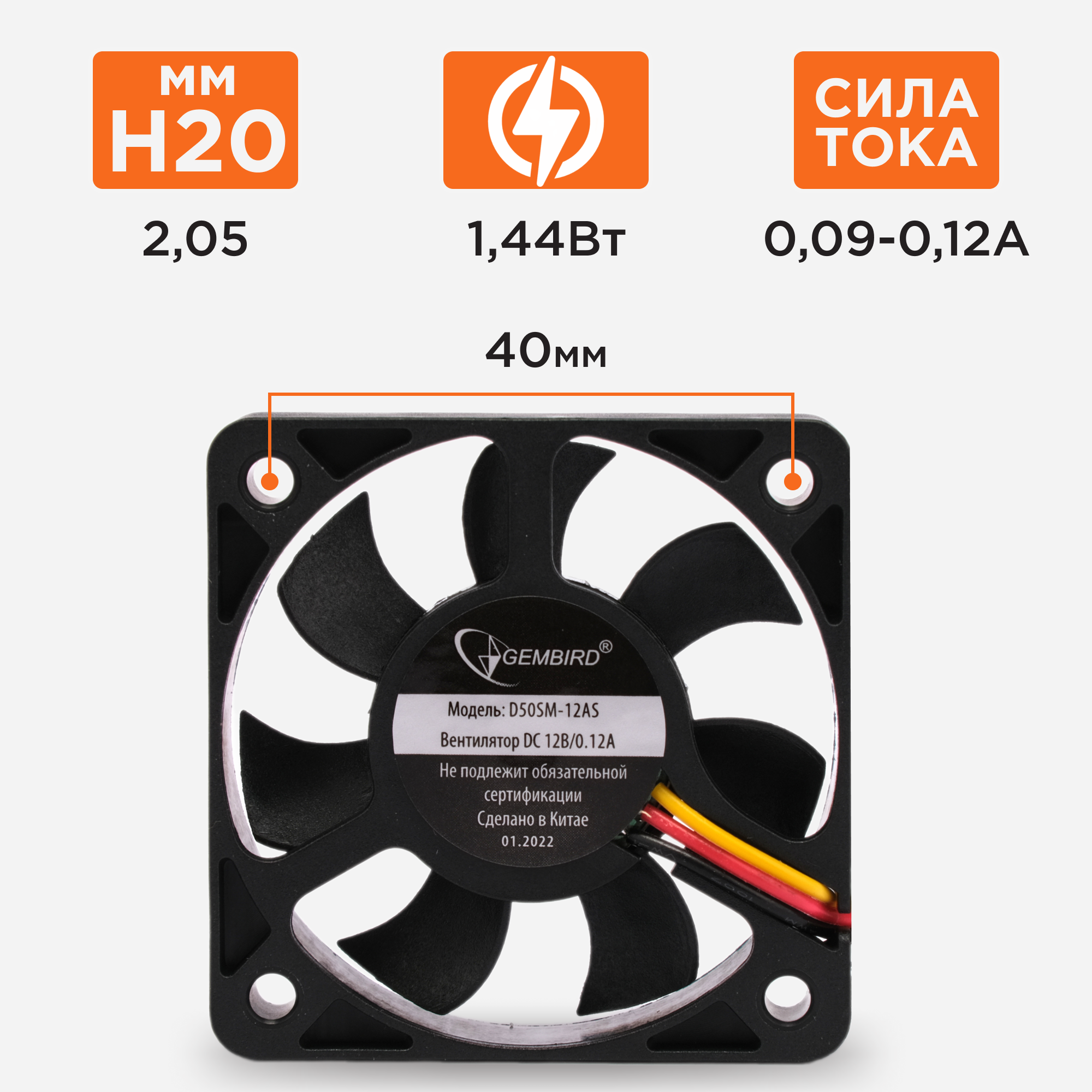 Вентилятор Gembird D50SM-12AS 50x50x10 втулка 3 pin провод 25 см 347 ₽