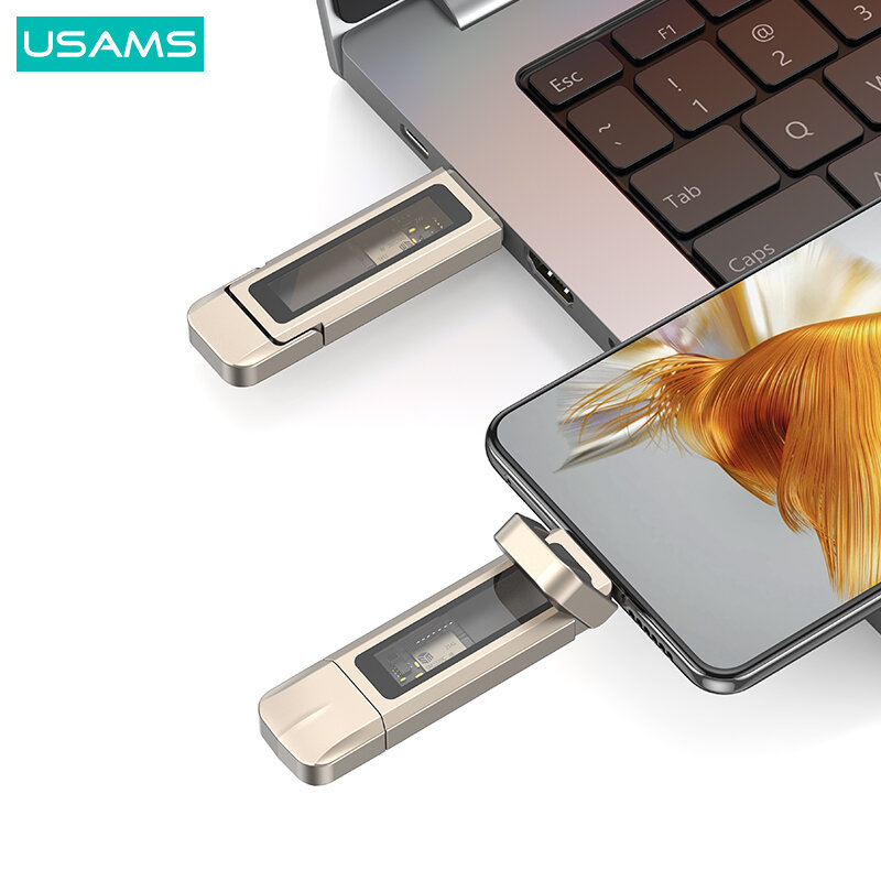 Флеш-накопитель USAMS • USB3.0 + Type-C • 256GB • OTG флешка для телефона, планшета, компьютера, ноутбука, iPhone серии 15